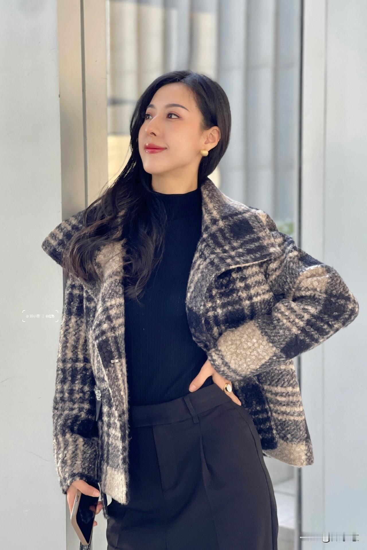 办公大楼里的时髦女郎 格纹大衣是我的衣橱必备啦 英伦复古,帅气随性 是一件很容易