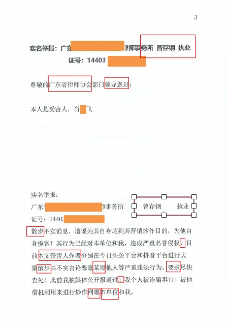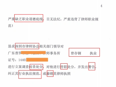 深圳法务肖主任对曾律师的投诉信错误20多处