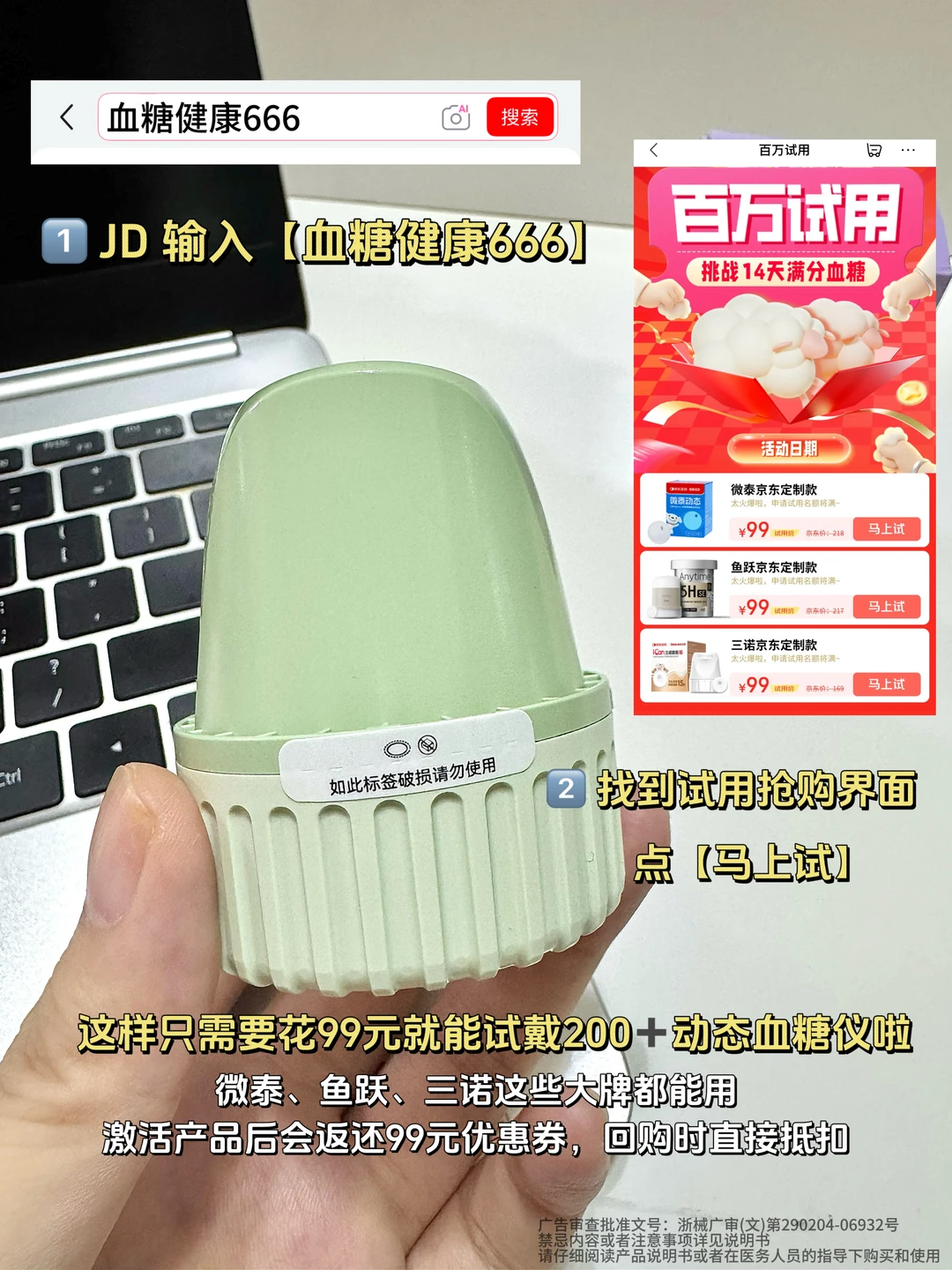 [星R]还没用过动态血糖仪的,现在JD有活动,进入“血糖健康666”或“健康6666”即可进入会场,只需要99元,花费99元就能试戴价值200+的血糖仪,包括微泰、鱼跃、三诺这些大牌都能试用,我自己在用的微泰就参加了,很划算,而且血糖仪激活后,会返还99元优惠券,回购时直接抵扣,相当于这次是免费使用了,真的很划算,有需要的姐妹真的可以试一下~
