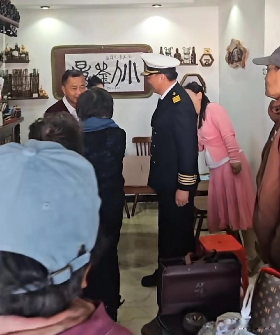 这是哪位大佬?穿着制服拜访沈巍,今日刚发的视频,很短的视频中,并不清楚这位穿制服的人物是谁,但看有4条杠,应该级别不低。 有人指出,这很可能是一位船长。