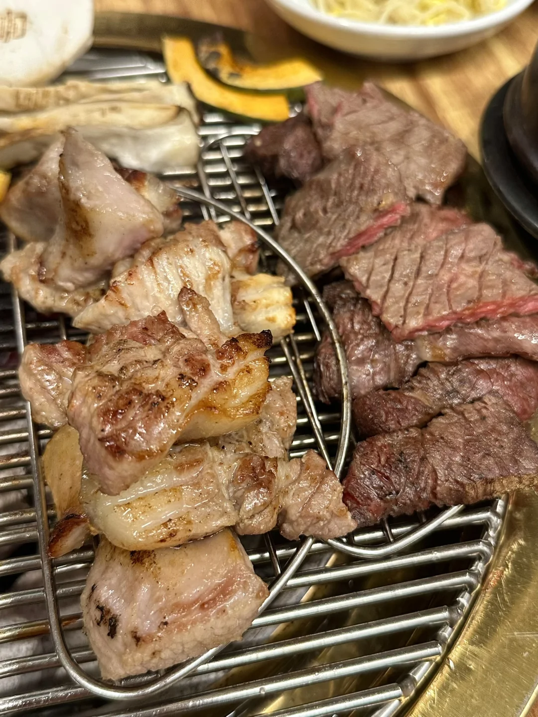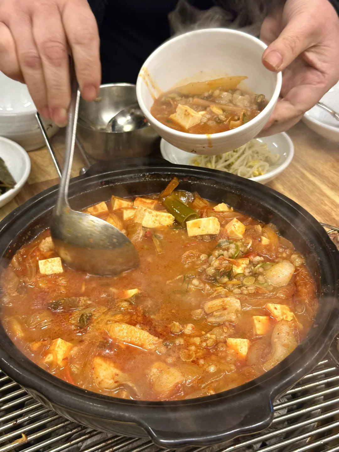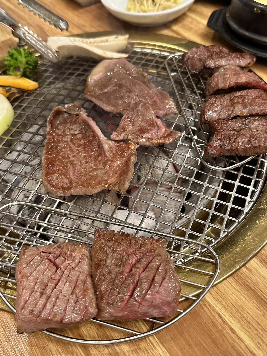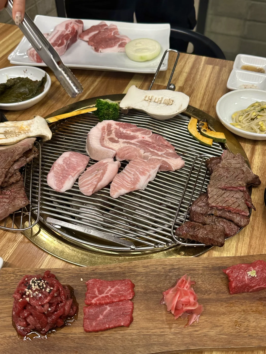 本地姐姐推荐我们来的 因为预算不是很高又想尝尝韩牛 没想到还很惊喜 韩牛也用的是1++韩牛,这是韩国最高品质的韩牛了还送了我们韩牛小盘🆓的 口感就是很嫩,入口会爆汁 韩国人真的很多 感觉还没有很多中国人 他家还有黑猪肉可以点,还有包间人多的话不想太嘈杂也可以去包间 鲍鱼鱼籽黄油饭还有泡菜大麦汤饭也是他家招牌,还没吃过有被惊艳到 💰 算下来人均165r吃韩牛,我真的要哭了呜呜🥹 🏠 嘟嘟噜 韩牛和黑猪 📍 莲洞272-2