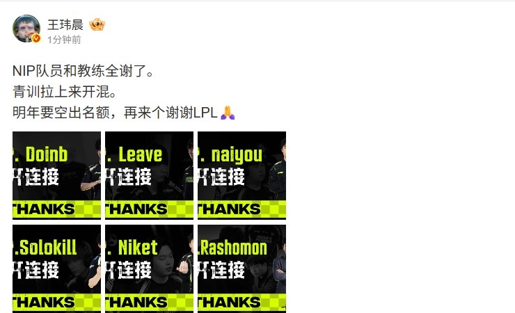 媒体人看NIP官宣多人离队:青训拉上来开混 明年要空出名额