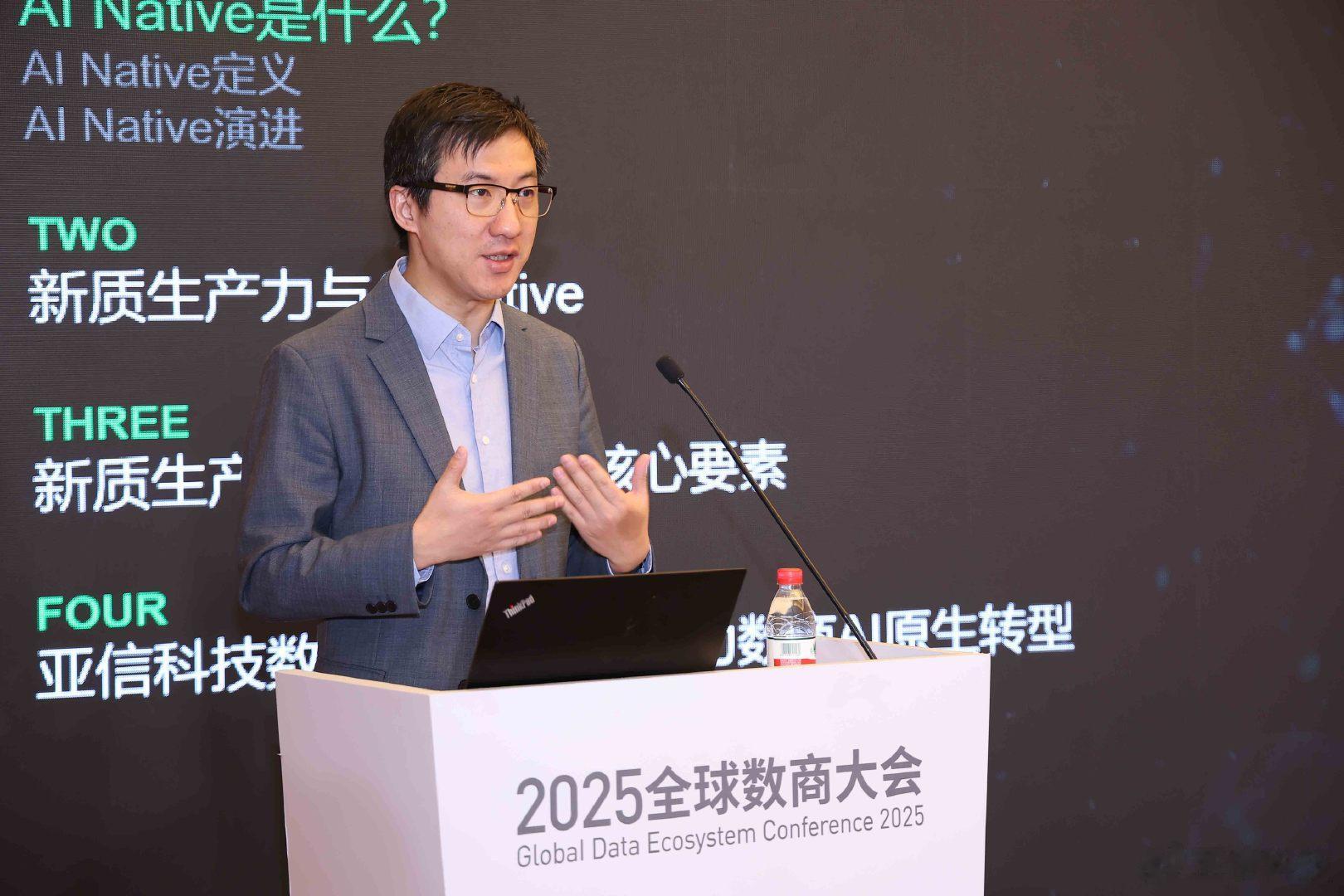 亚信科技首席技术官、高级副总裁、IEEEFellow欧阳晔博士,带来《AI原生演进之路》主题分享。他深入阐述了构建AI原生软件的关键路径:即通过数据语义化建立统一认知框架,通过业务本体化实现业务流程和模型的逻辑映射,通过应用智能体化构建外部环境和内部需求双驱动的智能应用。他系统性说明了如何超越传统的数据应用模式,通过构建AI可理解的语义和本体,将沉睡的数据资产转化为AI原生的核心驱动引擎,并结合亚信科技助力行业客户数智化转型的实践案例,为行业高质量发展提供了兼具理论深度与实操价值的清晰指引。