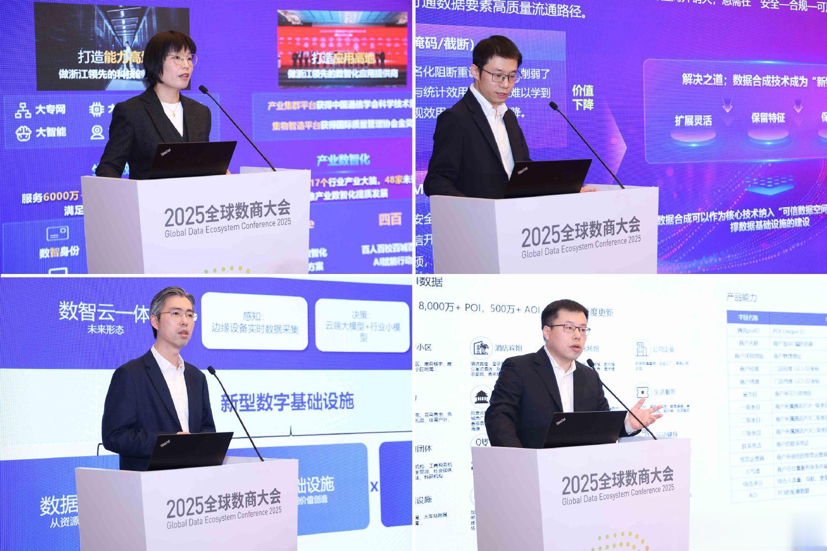 浙江移动数智科技有限公司交通行业总监袁晓苏,讲述了浙江移动基于通信网络和数据智能技术,打造新质生产力,促进低空产业发展的实践探索。亚信科技移动数网事业部数智产品开发部总经理梅珂夫,介绍了“数据合成技术”这把打开公共数据安全流通大门的“新钥匙”。阿里云政企事业部上海公司解决方案总经理张振华,全面解析了“数智云融合”对数据要素价值发掘的重大意义。腾讯云高级产品经理李欣,带来“LBS大数据赋能营销实践”的经验分享。