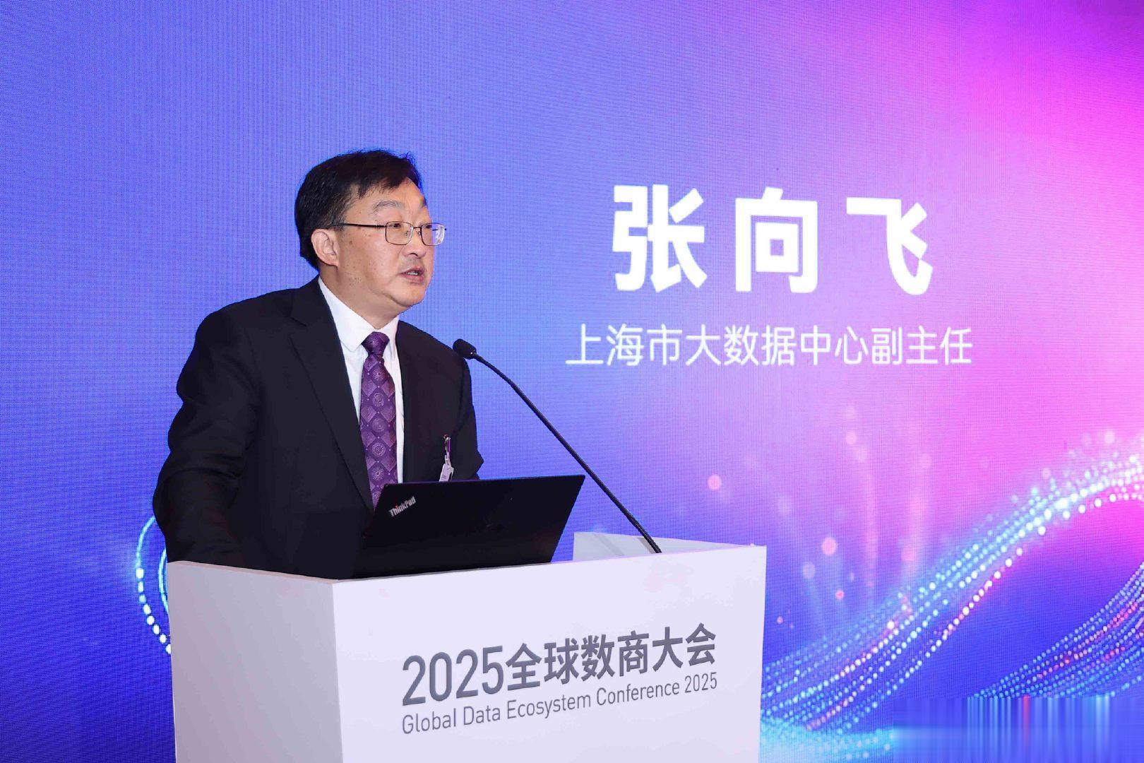 上海市数据局总工程师刘迎风莅临论坛。上海市大数据中心副主任张向飞、上海大数据股份副总裁姚震、亚信科技副总裁刘承堃为论坛致辞。