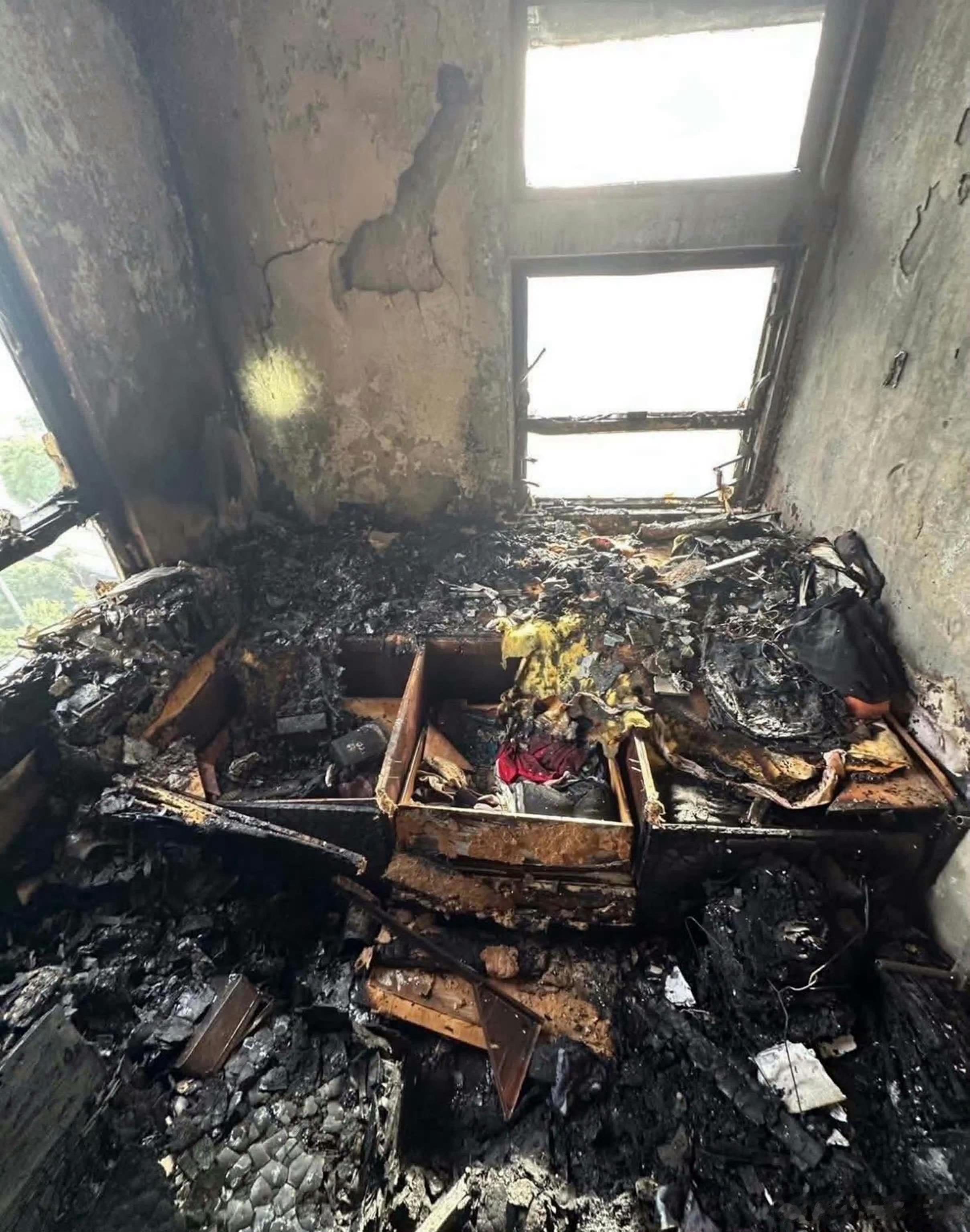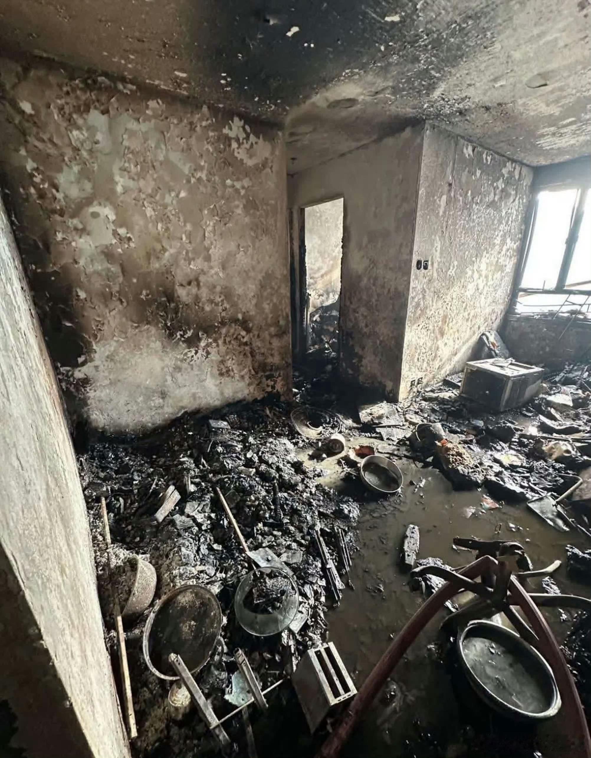 香港起火大楼的内部照,可以说是能着东西已经全部烧光了。热点现场直击香港大埔火灾