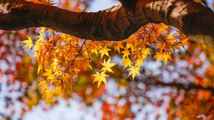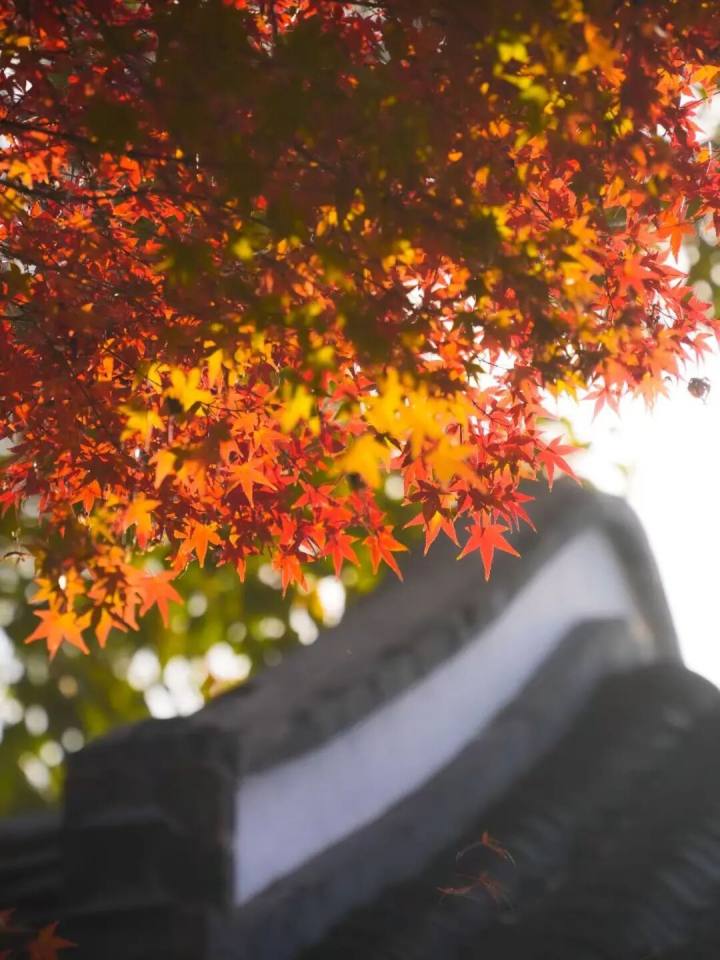 尤其是廊亭外,那一片橙红浓郁得像浸过糖霜,热烈而饱满。