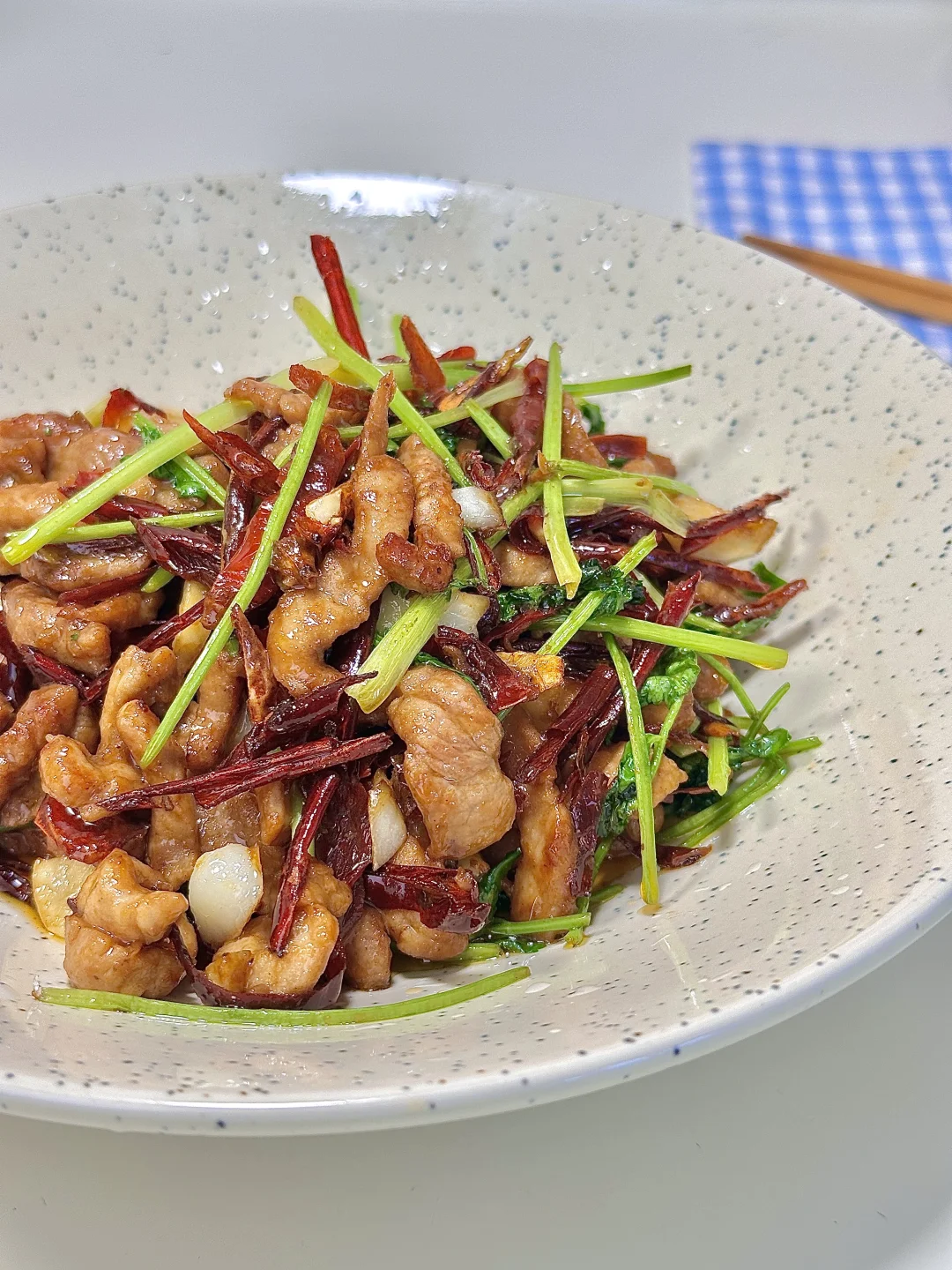 香辣肉丝 超级入味~香菜星人超爱[偷笑R]拌大米饭 拌面🍜都好吃。碳水的快乐[哇R] ✨食材:猪里脊 干辣椒丝 香菜 蒜 1️⃣:猪里脊切片再改刀切条,加生抽、酱油、蚝油、胡椒粉、红薯粉抓匀,再倒入食用油拌匀腌制10分钟。干辣椒剪成丝抖掉辣椒籽,泡会水沥干水分 炒的时候不会糊。 2️⃣:锅里倒油烧热 放肉炒变色推到一边,放蒜末 干辣椒丝爆香,再炒匀 调味加一点生抽 蚝油、鸡精大火炒香 炒出锅气,关火放香菜 用锅里的余温翻炒几下。 好好吃饭呀🖖🏻