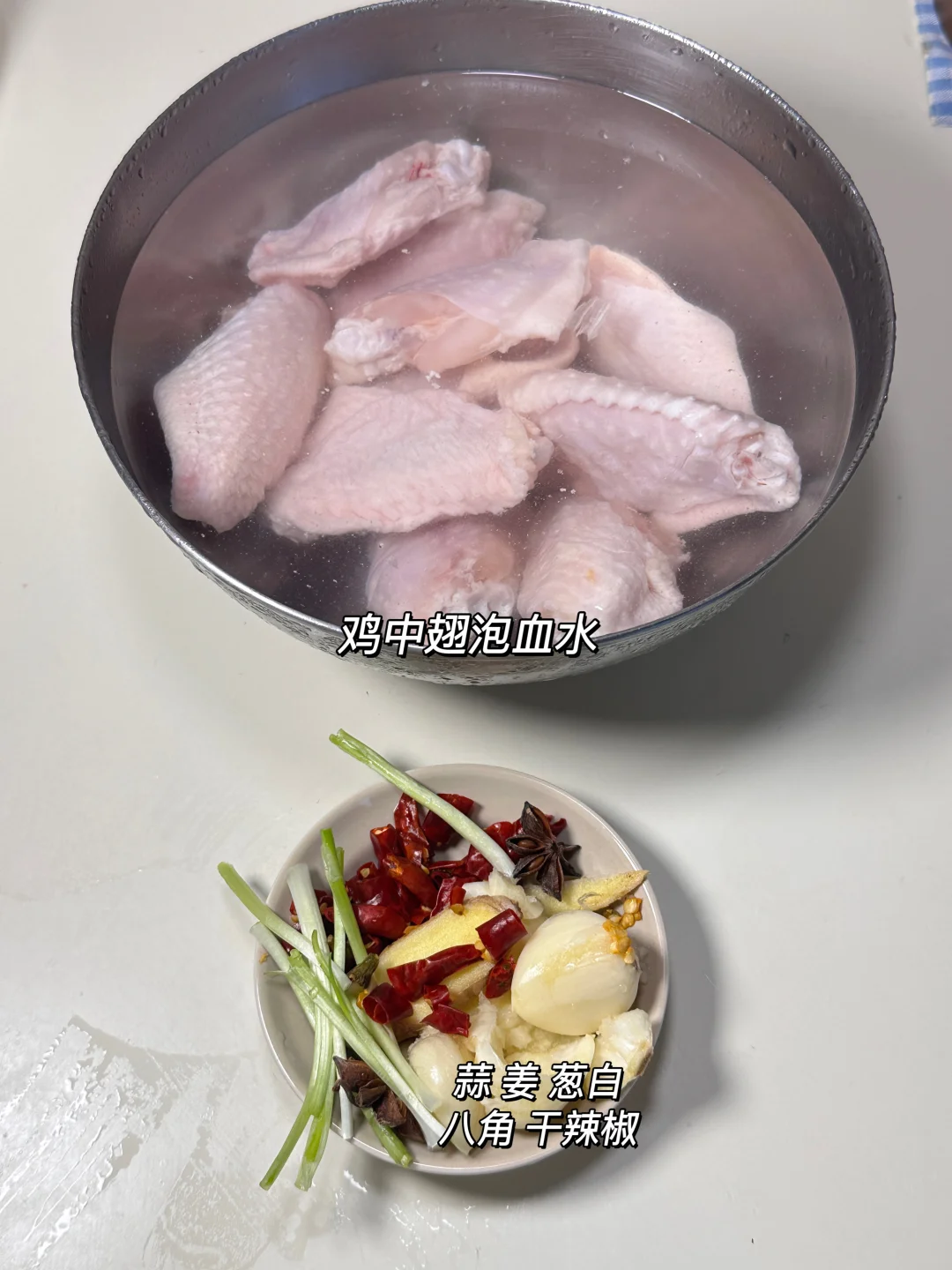 ✨食材:鸡中翅 姜片 葱 八角 干辣椒