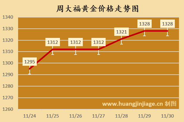 国内黄金零售市场价格保持不变!周大福等品牌金饰克价报1328元。黄金回收价格报938元。