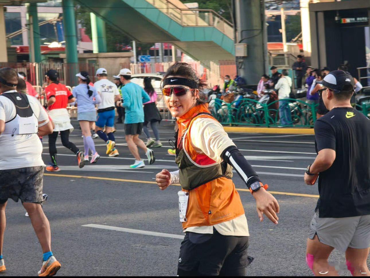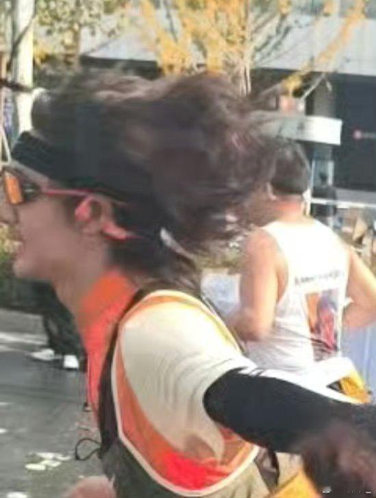 上海马拉松偶遇此沙 颜值与活力双在线!此沙现身上马赛道,一边奔跑一边和两侧粉丝击