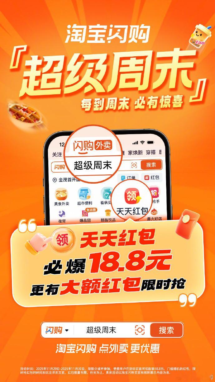 做饭能给自己吃成营养不良给大家分享一下自己私藏的冷门点外卖小妙招,淘宝闪购超级星期六升级为福利加倍的淘宝闪购超级周末,周六周日两天干饭福利!上淘宝闪购搜【超级周末】,领天天红包必爆18.8元,更有大额红包限时抢!每逢周末来淘宝闪购,必有惊喜等着你!!天这么冷,来点暖乎外卖热热自己!淘宝闪购必爆18.8