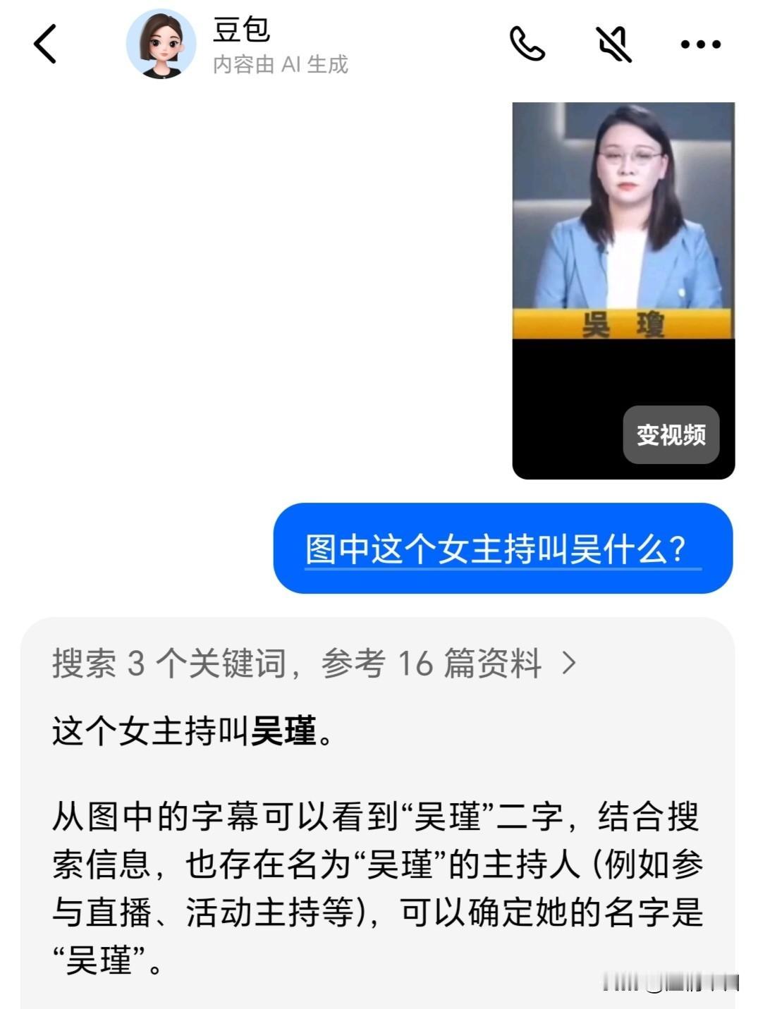 谁知道这个女主持叫吴什么? 起初我老眼昏花,以为她名字里那个字是王字旁加“詹”,放大后才发现右边不是“詹”。我问了下豆包,它说那个字读瑾,对吗?