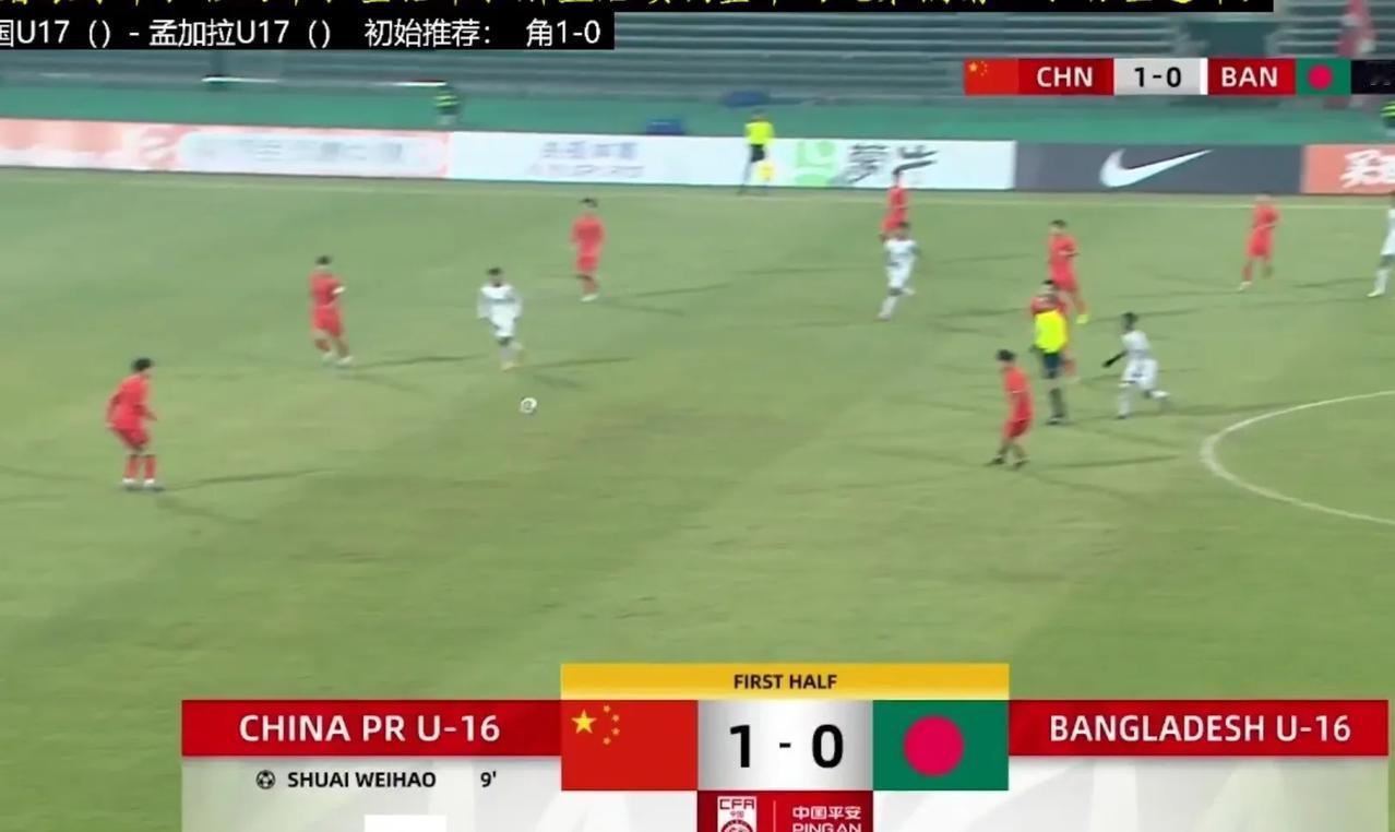 来啦!中国队才8分钟就进球了,邝兆镭右路送横传,帅惟浩门前抢点破门,中国队1比0领先孟加拉国,今天打破僵局太快了,中国队完美开局,看样子进球大战要开始了,孟加拉国真的抵挡不了中国队,中国U16国少加油!