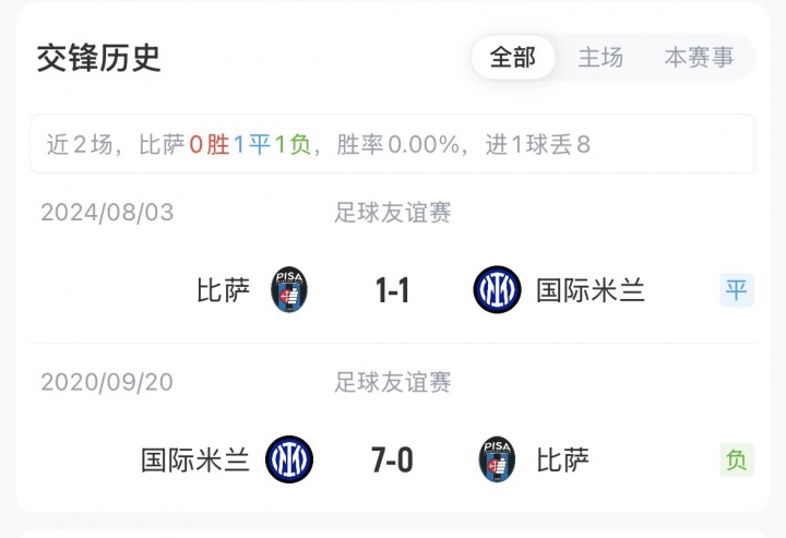 本场赛前,国米8胜0平4负积24分,排名意甲第4,比萨1胜7平4负积10分,排名意甲第17。两队上次在意甲交手得追溯到1991年。