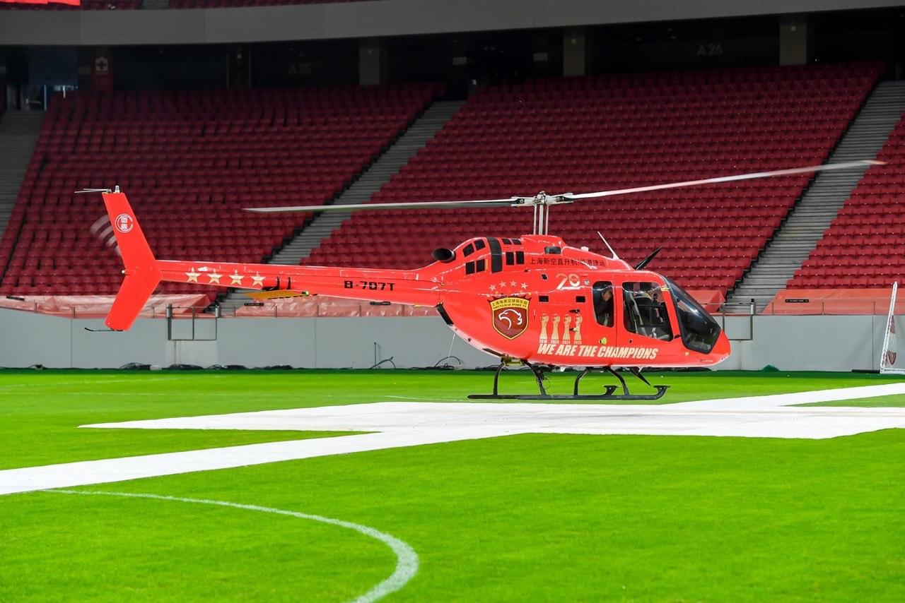 该限时活动价格为1680元每人,从上海龙华直升机场起飞,预计整个航程为10分钟,采用轻型多用途双发直升机贝尔429执飞,单次可搭载6人,每班次满5人起飞。报名参加此活动还将获得海港夺冠纪念画册一份和海港俱乐部吉祥物“伊戈”公仔一个。