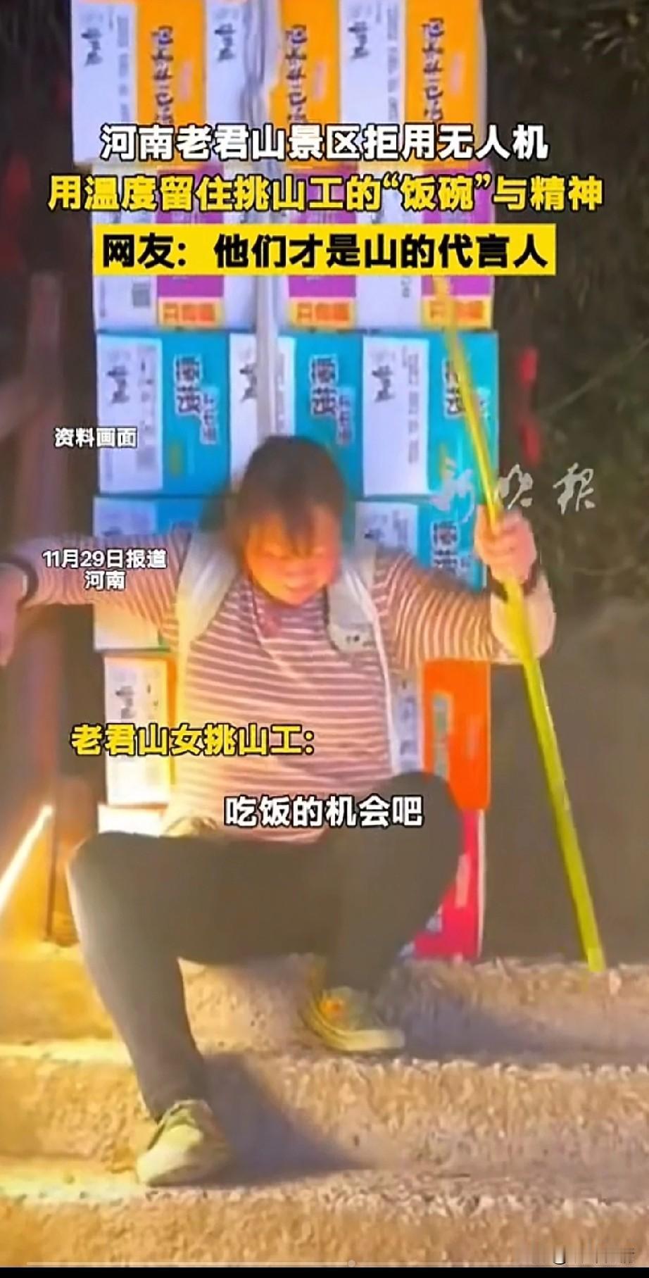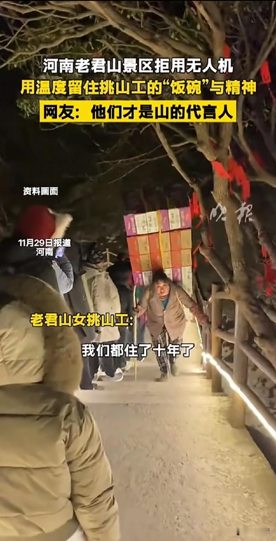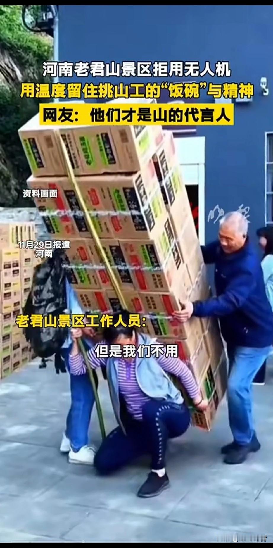 河南老君山拒用无人机, 有人会觉得它比较傻, 可真像让人敬佩, 原来老君山景区拒绝用无人机送商品, 是为了留住这些挑山工的饭碗和精神, 这才是有担当的企业, 挑山工都非常感谢景区给她们保留了工作,还给她们提供了住房, 虽然辛苦但是有干劲, 有人建议把无人机机器狗发给挑山工, 这根本不现实, 她们根本无法操作, 她们的背后都是一个个家庭, 人家景区有无人机和机器狗, 人家不用这就是人家的担当, 企业家和资本家还是有区别的, 还有网友表示她们是山的代言人, 确实揍她们在的景区才有内涵, 大家对于老君山拒用无人机给挑山工保留工作怎么看? 每人推荐一个旅行目的地老君山景区拒绝用无人机取代挑山工 老君山 老君山旅游 老君山旅游照 洛阳老君山旅游