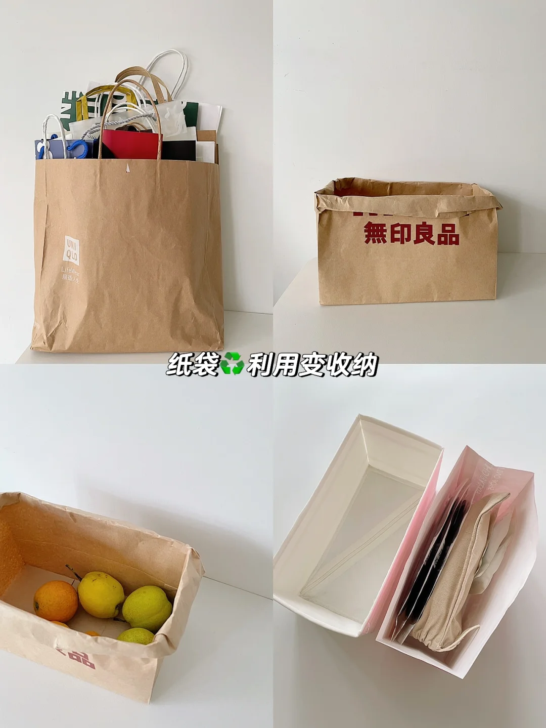 笔记灵感 这周发现了纸袋的新用途,打开了新世界,把家里的收纳盒都断舍离了,用纸袋装我的物品,太开心了。 · 不再买收纳盒,也帮我省下好多💰与空间。 · 这周入手了电热饭盒,小风扇,下次跟大家分享618我的极简必需品,有些物品是需要的,特别yi 清下需要囤生活用品,但因为极简主义,把物品存放好不过多,是我的基本底线。 · 家里干净了,好运也会来,人生也更加顺遂,祝好! 🧼🛀🧽🪞🛏🛋🚪🪄
