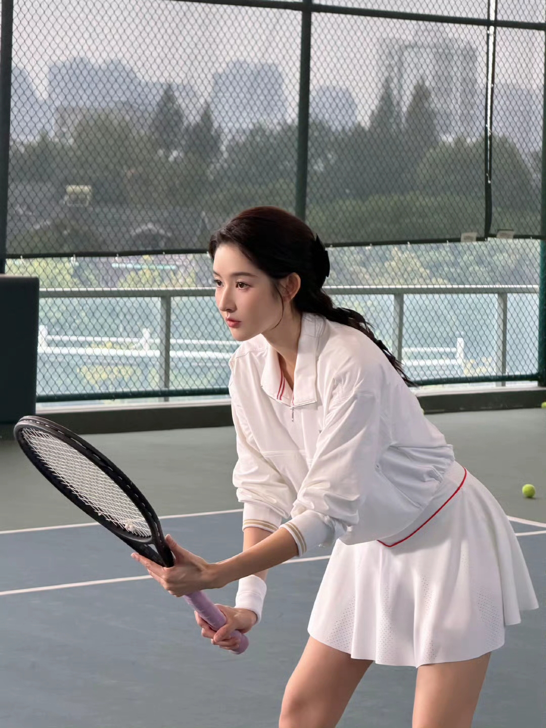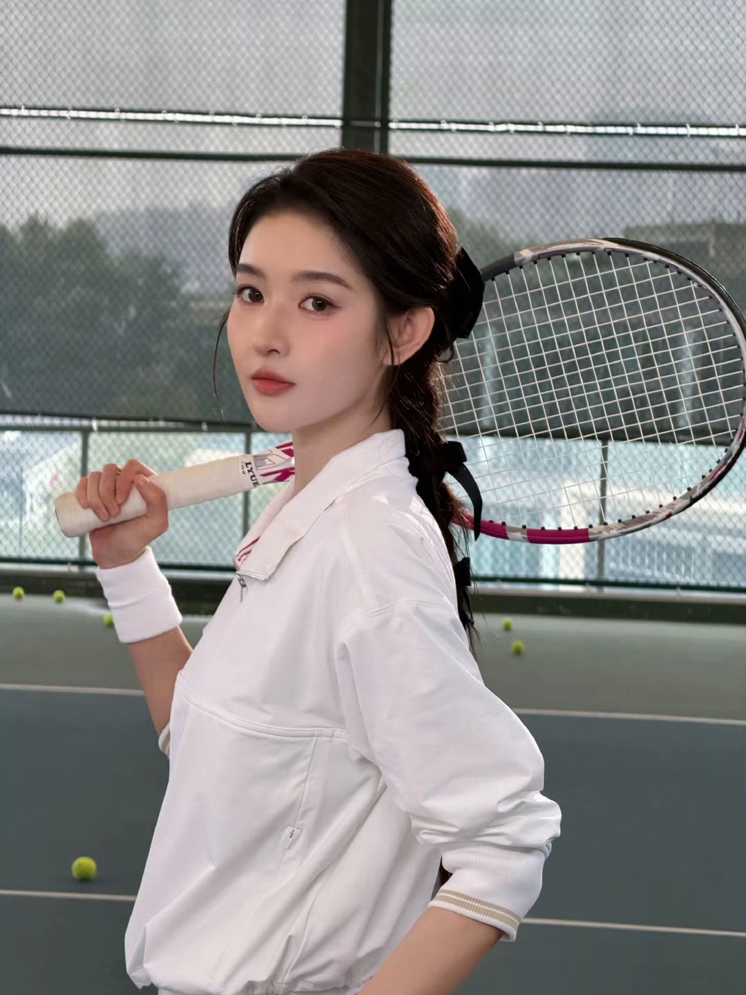谁能拒绝运动系美女啊!王玉雯这组网球写真把“活力时尚感”焊死了——白运动套装+百褶裙,红边细节点睛,低马尾配黑饰带,挥拍动作又甜又飒。
