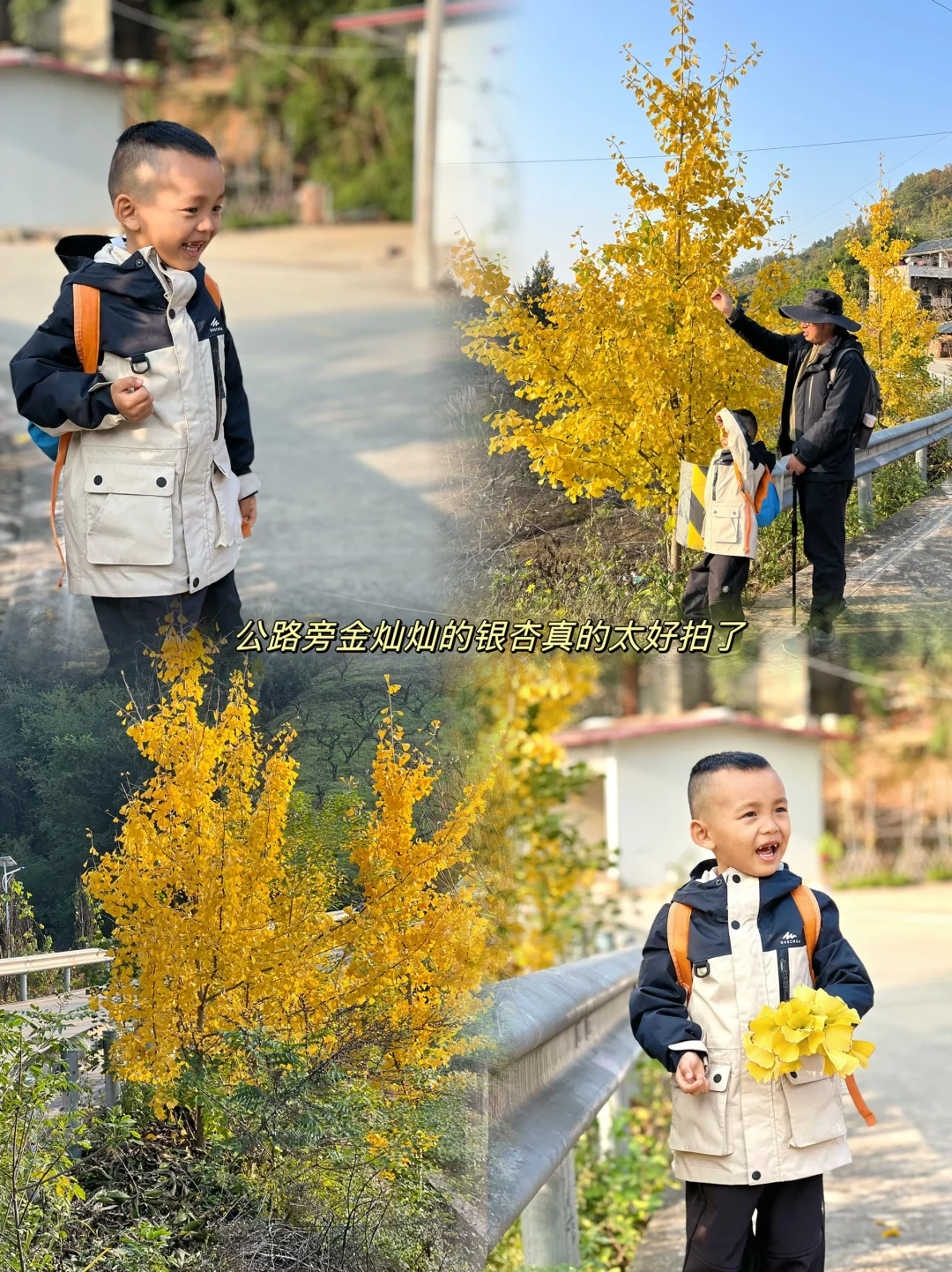 ✅沿途有很多的果树,桃树,梨树,枇杷树,橘子树,甘蔗等等公路旁还有金灿灿的银杏🍂