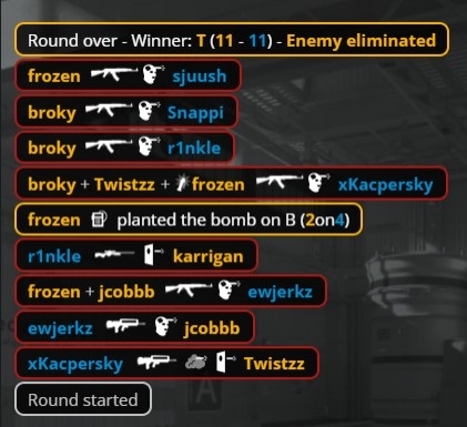 FaZe:karrigan、cobbb、frozen、broky、Twistzz