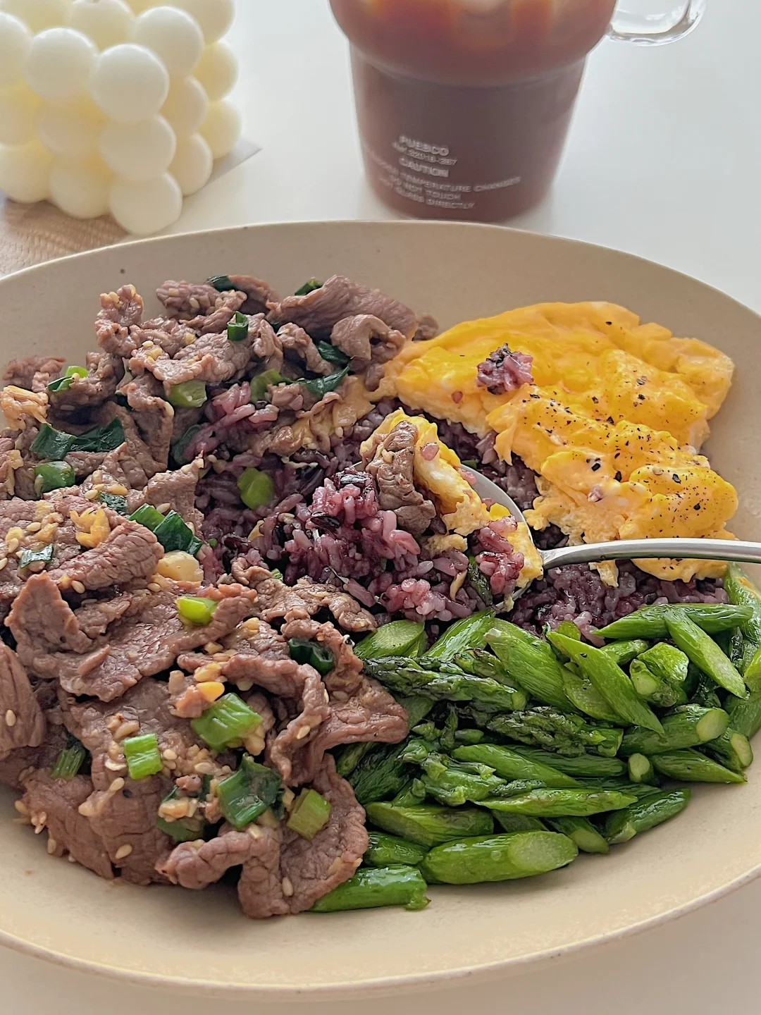 一人干净饮食|葱香牛肉三色拼饭🍱好吃不胖