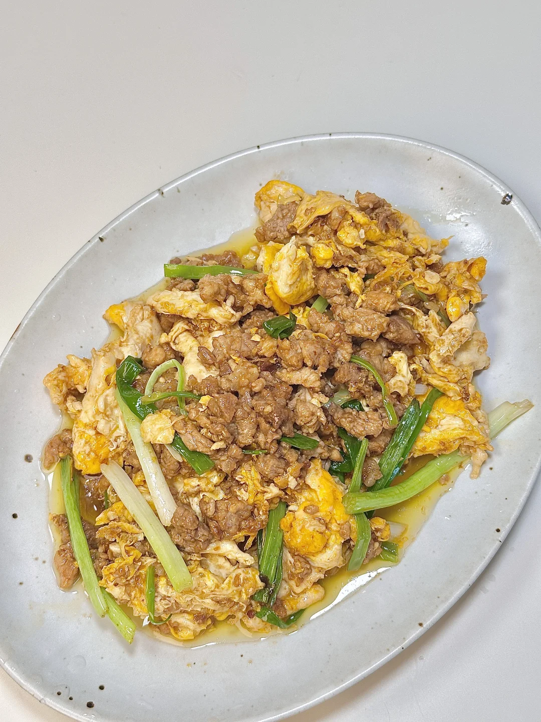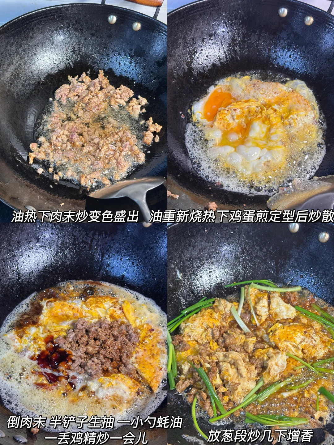 鸡蛋炒肉末 太下饭了🍚 咸香可口 饭渣小朋友也超爱 拌了一碗饭~ 的三餐四季 ✨食材:鸡蛋 肉末 葱 1️⃣:肉剁碎加一丢丢酱油,淀粉 油抓匀腌制五分钟。锅里倒油烧热 放肉末炒散炒变色盛出。锅里的油重新烧热 放鸡蛋煎定型后炒散,放肉末 加半铲子生抽 一小勺蚝油 一丢鸡精炒匀炒入味。加入葱段炒几下增香。 好好吃饭呀🖖🏻
