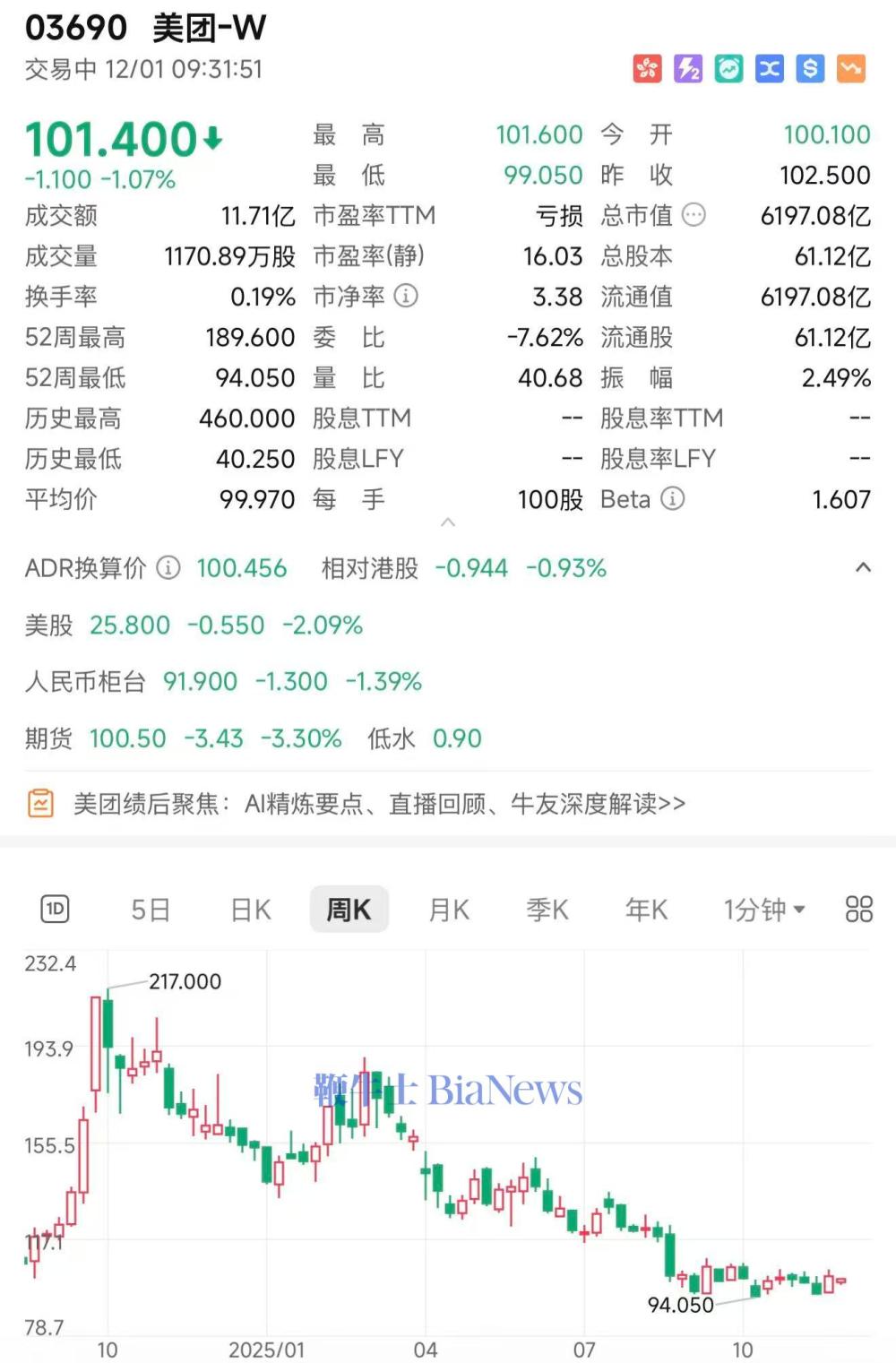 消息面上,美团Q3营收955亿元,经营亏损141亿元。