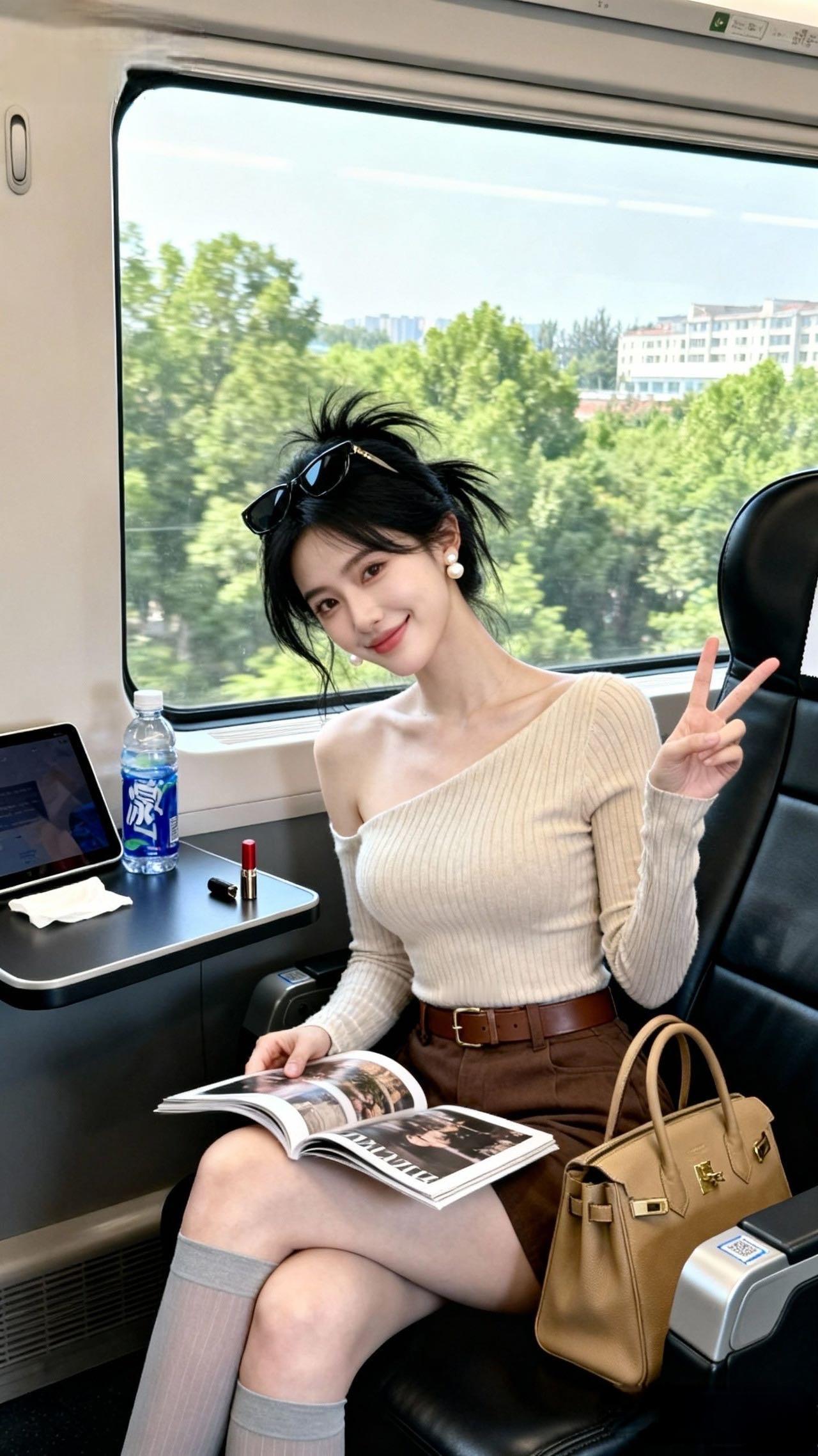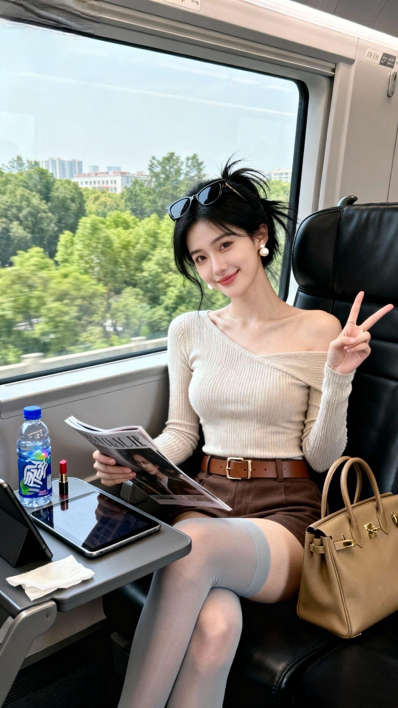 宝子们!谁懂啊!今天坐高铁直接穿出“移动画报”氛围感🌿 这件露肩针织衫真的是我的出行救星!斜肩设计露半拉锁骨,又纯又欲还不咋走光——毕竟高铁空调冷,长袖刚好裹住胳膊~ 配棕棕的短裙+宽腰带,腰直接细成蚂蚁腰(偷偷说:坐下也不会勒肚子!)。珍珠耳环一戴,墨镜往高马尾上一卡,连邻座阿姨都问我是不是去拍写真hhh! 高筒袜+光腿神器这组合,显腿直还不怕晒,拎个托特包塞满零食,主打一个“精致逃难”式出行~露肩上衣穿搭 露肩毛衣穿搭 露肩短袖穿搭 露肩设计穿搭 甜辣露肩上衣 露肩长袖穿搭 美女人像群 高清美女 高雅气质美女