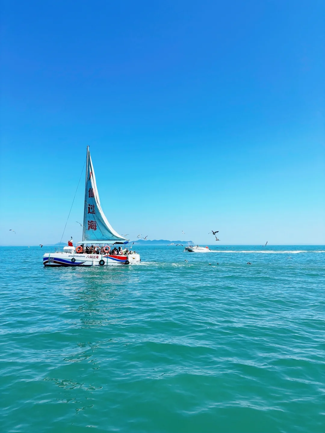☯️到达景区后,可以选择游船⛵️或者缆车🚡在海上游览,真正体验一下八仙过海的乐趣。