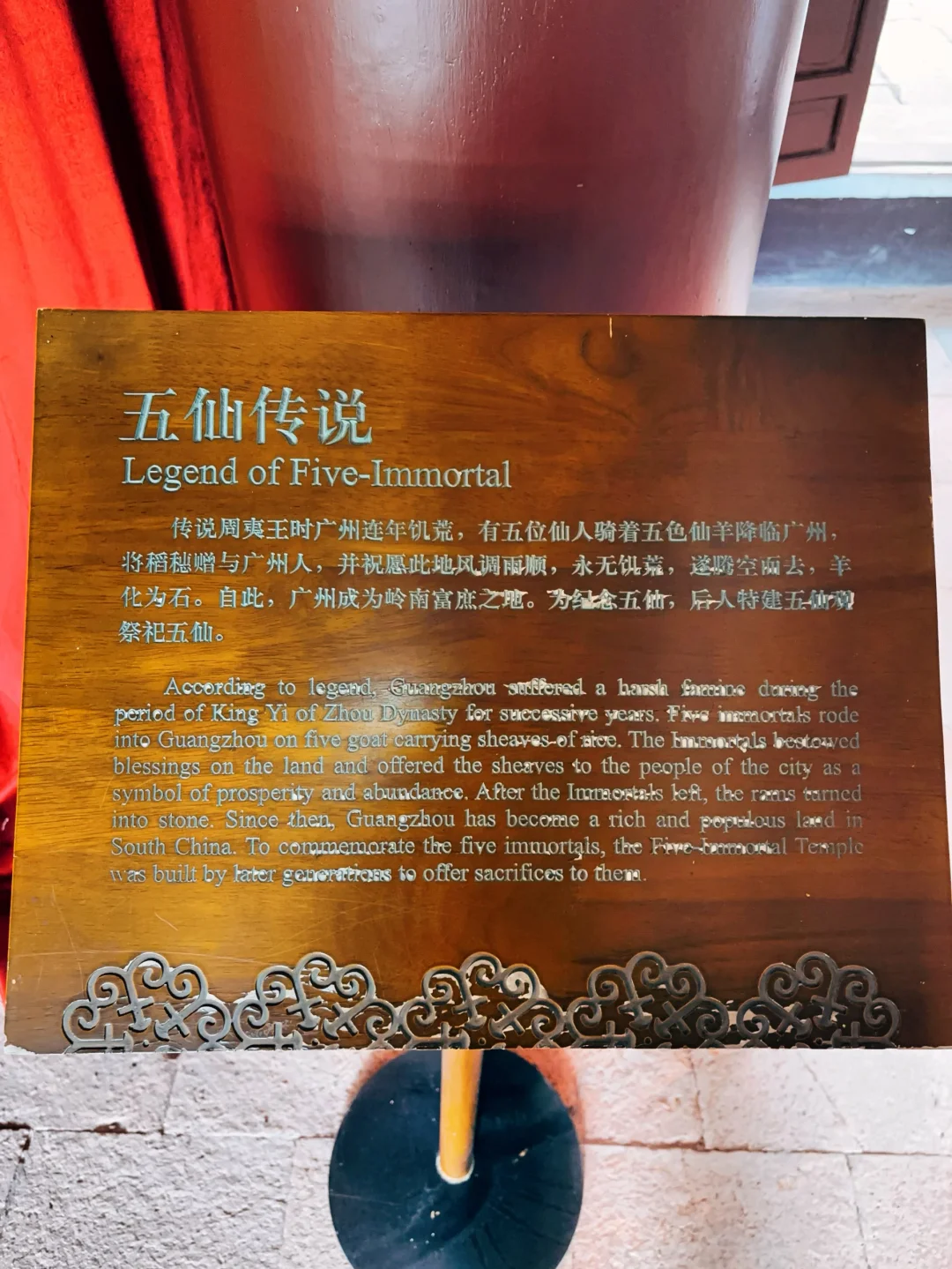 🐐相传,广州建城之初,田野荒芜,有五位仙人手持谷穗,骑着不同毛色的山羊而来,羊口衔着一茎六出的优良稻穗,降临楚庭。祝此地永无饥荒,遗谷穗而去。