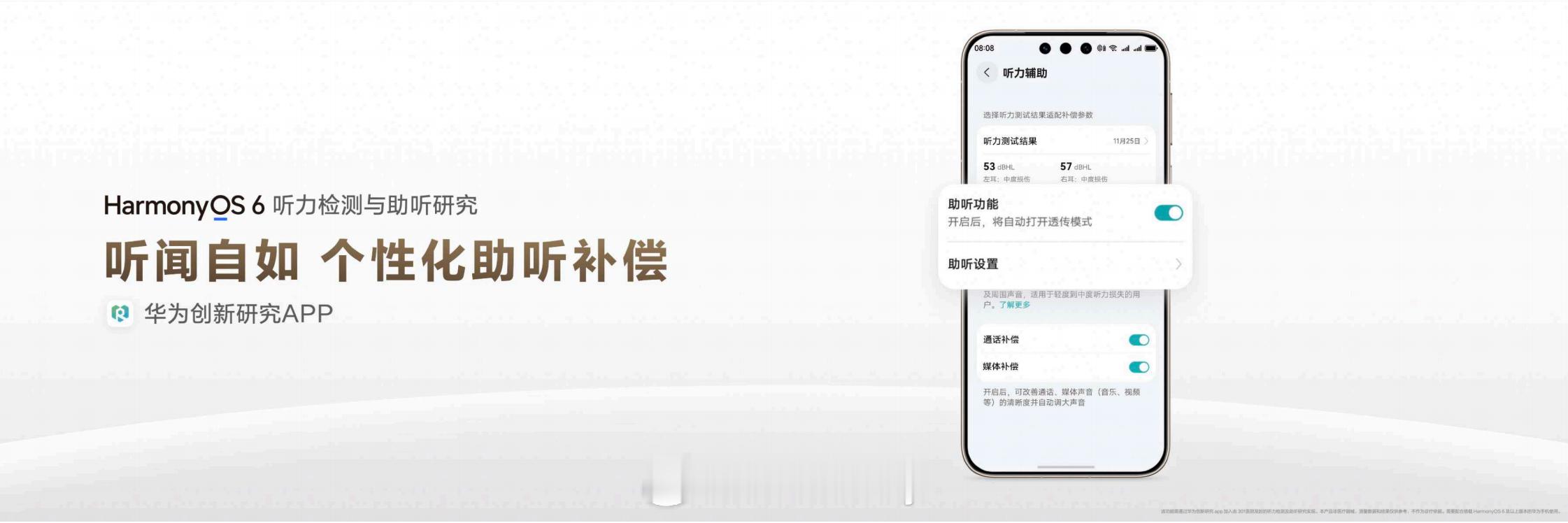 科技让温暖具象化,蓝牙耳机并不只是摆脱掉线,还能凭借技术创新,实现有温度地连接。华为FreeBuds Pro 5,支持听力补偿功能,当听障人群佩戴之后也能够听得清声音,让模糊的杂音变得清晰,让沟通不再有距离。华为耳机首发听力补偿功能 科技让爱听得见以前佩戴耳机只是为了听音乐,现在佩戴耳机可以帮助听障人群解决沟通的烦恼,毕竟技术的创新,是为了真正解决问题温暖每个人,哪怕是少数人的需要,也应该有相关的技术协同。听力补偿功能+听力检测,小小的耳机也能有助听的功能,更可以让我们对听力进行自检。星闪™音频技术带来稳定连接,双频多模态灵犀天线确保信号稳定,更有无损原声好声音,这样有温度又技术全打满的耳机,的确更值得拥有,也更适合推荐给身边的亲人和朋友。