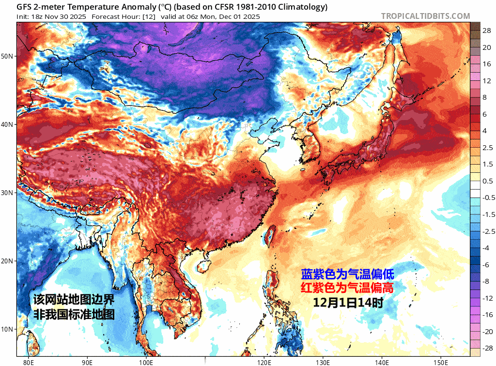 【一周天气——前冷后暖】本周(12月1-7日),周初因为冷空气影响,气温走低,北方多地将创下半年气温新低。不过周后期,气温又会明显回升,转为偏高。周二和周三因为冷暖空气交汇,南方将有较大范围的阴雨,但强度不强。之后降水又减少。另外台风天琴逐渐减弱消散,但周后期可能还有新台风形成。1、降水12月1日,西南和华南会有些分散的降雨,对应暖湿气流有所增强。12月2-3日,在冷暖空气交汇之下,四川东部、重庆、贵州、广西、湖南、广东西部、海南、云南东部将有成片的降雨。这也是本周降水最多的2天。随后降水再次缩减。即便降雨不强,南方干燥的程度会缓和,不会像上周那么干燥。本周青藏高原到华北等地,总体还是晴朗干燥的天气为主。午后最小相对湿度,还是普遍低于30%,部分站点甚至会低于10%。12月2日因为冷空气入海,在山东潍坊烟台威海以及辽宁大连一带,可能出现冷流降雪。图1为官方报降水,图2-3为欧美数值预报降水,图4-5为相对湿度预报和形势场预报。2、气温本周北方的气温先抑后扬,低开高走。南方气温呈现V型走势,波动都很大。12月1-3日,受寒潮影响,我国中东部地区将自北向南出现大风降温,江南东北部及长江以北地区日平均或最低气温普遍下降6~10℃,内蒙古中东部、华北北部、东北地区、黄淮东部、江淮东部等地下降10~12℃,局地降温可达14~16℃。12月2-3日东北华北黄淮多地气温将出现创新低的浪潮,哈尔滨可能是下半年首个跌破零下20℃的省会城市。太原可能首次跌破零下10℃,郑州将首次跌破0℃。北京12月2日有可能是下半年首次全天低于0℃。不过降温之后,升温也明显。哈尔滨和长春,12月3-6日,累积升温16℃,沈阳累积升14℃,周后期转为偏高。江淮江南一带,本周气温是两头高、中间低。部分城市最高气温明显的V型走势:合肥17-8-17℃、武汉20-10-20℃、南京17-9-17℃、上海18-9-18℃、杭州20-11-19℃、南昌22-12-20℃、长沙21-12-19℃、福州27-17-25℃。从最低气温看,南京12月4日晨可能跌破0℃,为下半年首次。3、其他27号台风天琴,大概率在周二可能就会停止编号。在关岛西侧、菲律宾东侧的扰动在周后期可能发展加强,有可能成为28号台风。下周将进入南海。总体还是低纬度西行的常规路径。另外周初,河南湖北等地可能还有些上游输入的沙尘。之后总体的大气扩散条件较好,没有明显的霾和沙尘,但南方降水过后,3-4日晨,不排除有雾。
