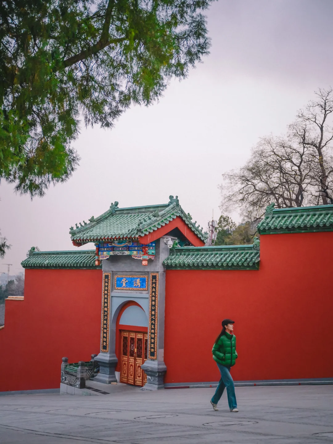 暂离香火,于千年古树下品一盏清茶。古香道漫步,红墙灰瓦掩映着斑斓秋色,心也随之沉静下来。所谓治愈,大抵如此。