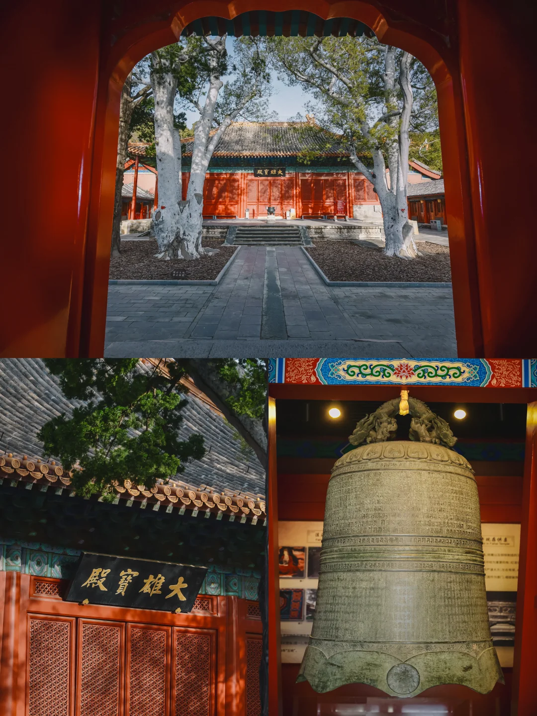 🌟 寺内五绝不容错过:壁画真迹、千年白皮松、曼陀罗藻井、龙形青铜钟、四柏一孔桥