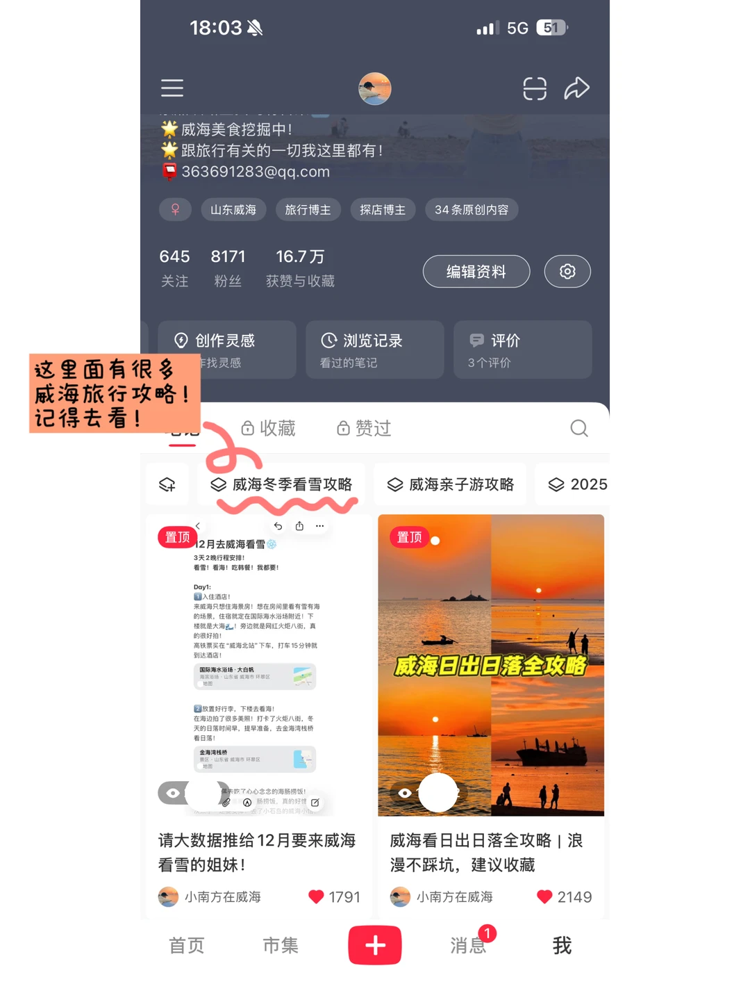 图4给大家指路了威海旅行攻略的合集,你们肯定能用上!姐妹们记得去看!