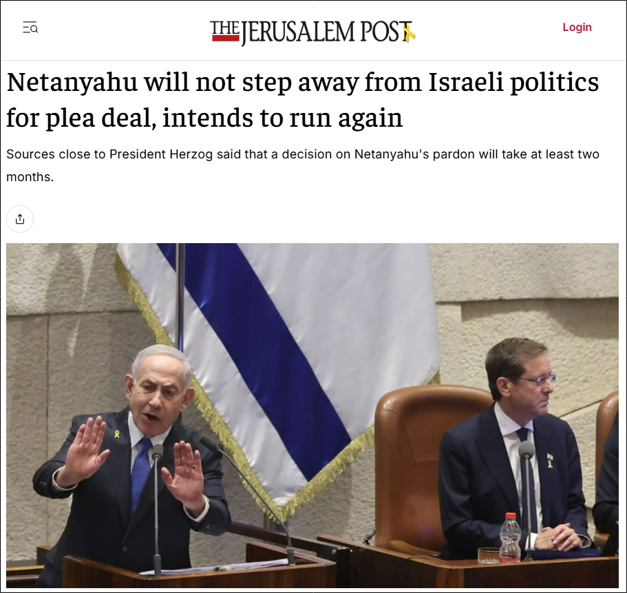 实际上,当时以总统赫尔佐格办公室的回应也值得关注,在感谢特朗普对以色列支持的同时,强调以色列司法系统是独立的,任何赦免请求必须由相关人士或其家属通过司法部赦免部门的标准程序正式提交。