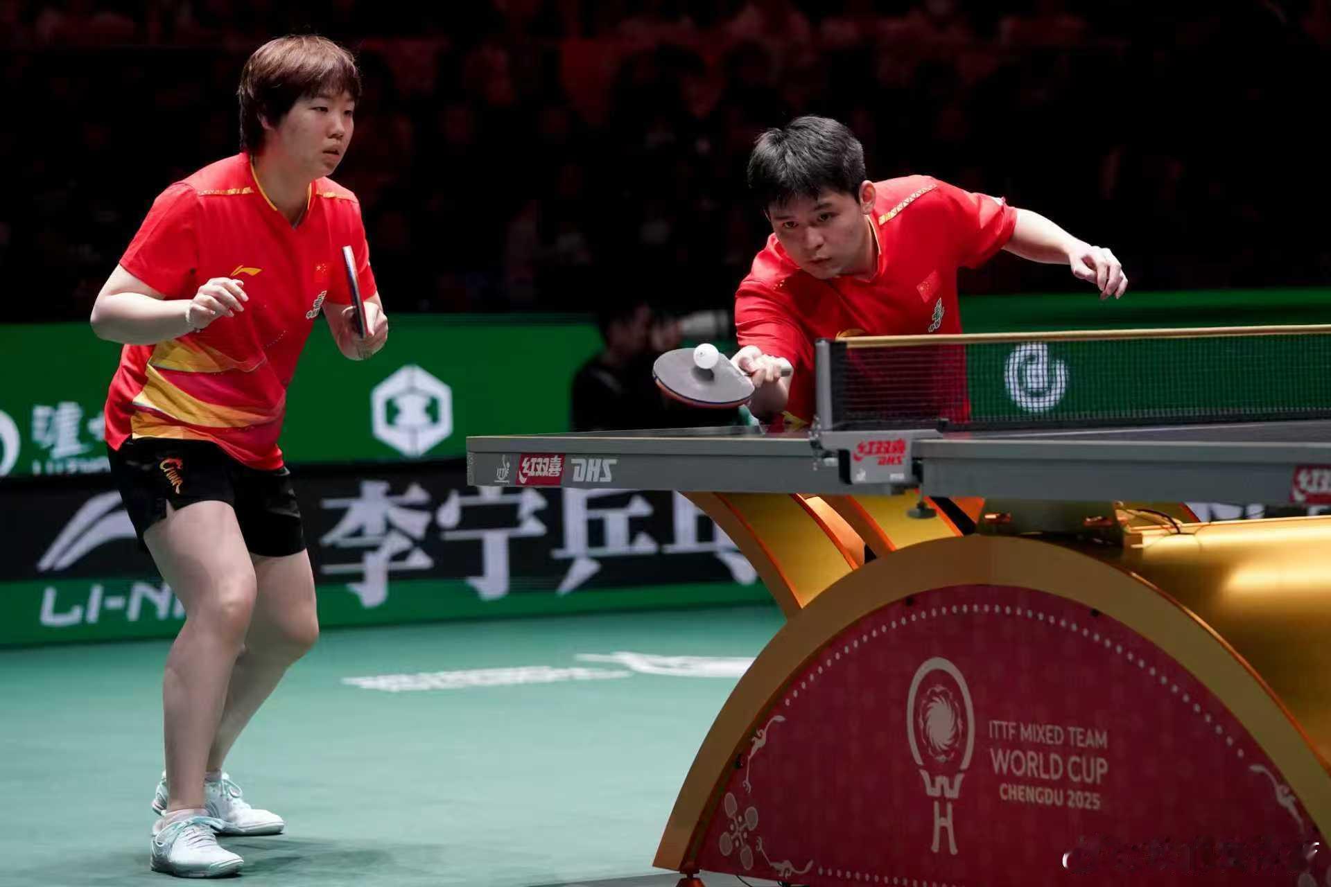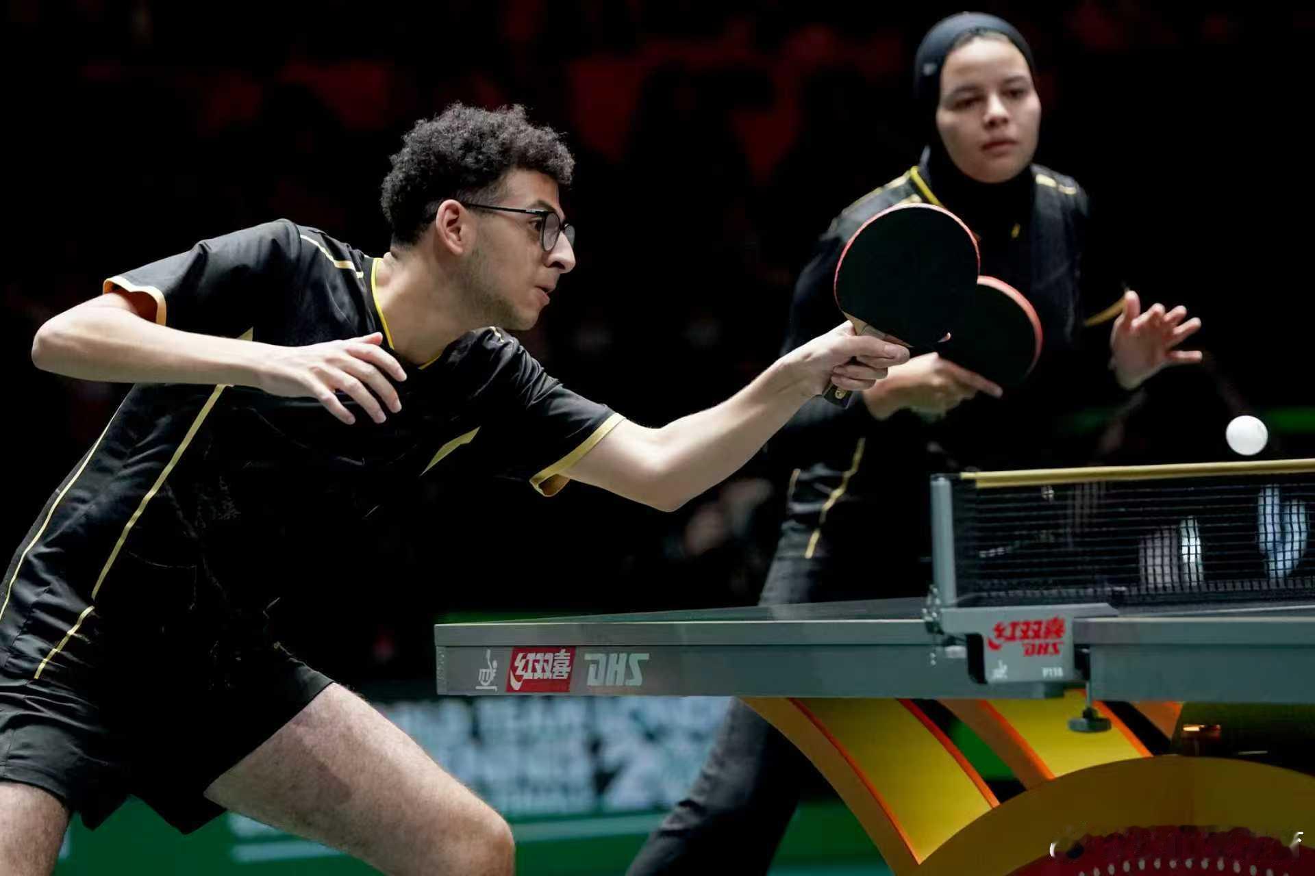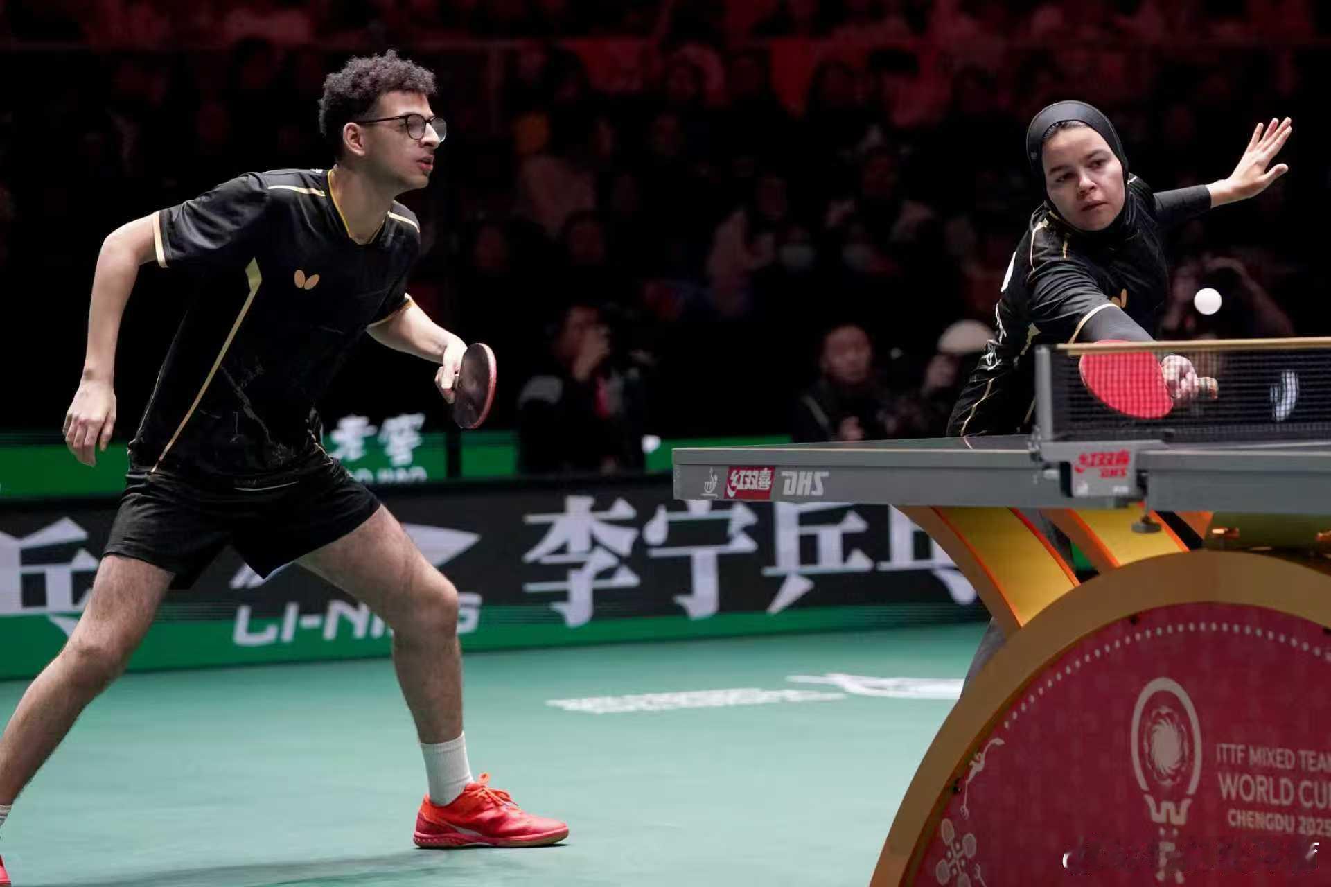 中国vs埃及 首盘混合双打,林诗栋/蒯曼3-0(3、3、7)穆斯塔法/玛尔娃-阿尔霍达比,图片来自WTT世界乒联。2025成都混团世界杯