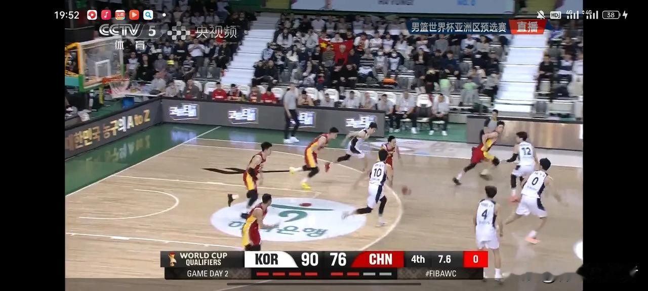 中国男篮和韩国男篮世界杯预选赛第二场比赛今晚结束了第二场比赛,中国男篮以76:90再次负于韩国男篮,世界杯预选赛两连败。 球员表现和数据如下: 1,陈帅鹏拿下全队最高19分。 2,廖三宁8分7助攻。 3,周琦14分13篮板。 以上三名队员表现及格。 4,曾凡博3投0中。 5,张镇麟5投1中。 6,胡明轩9投0中,表现惨不忍睹。 接下来,中国男篮还要和日本和中国台湾进行主客场四场比赛,世界杯出现形式危机重重。