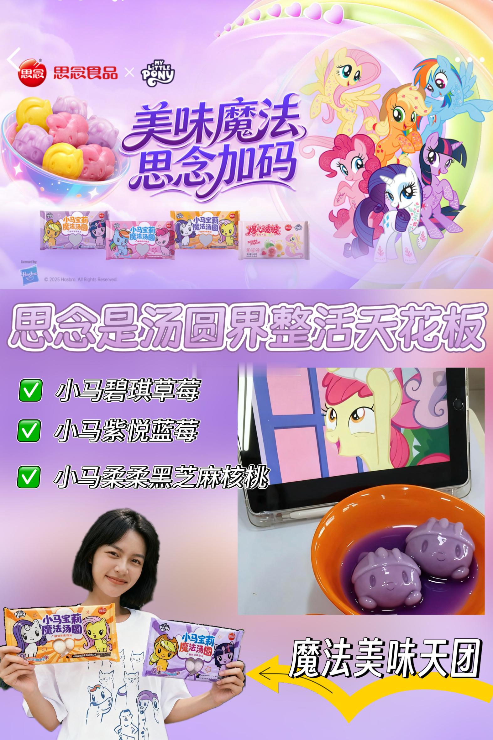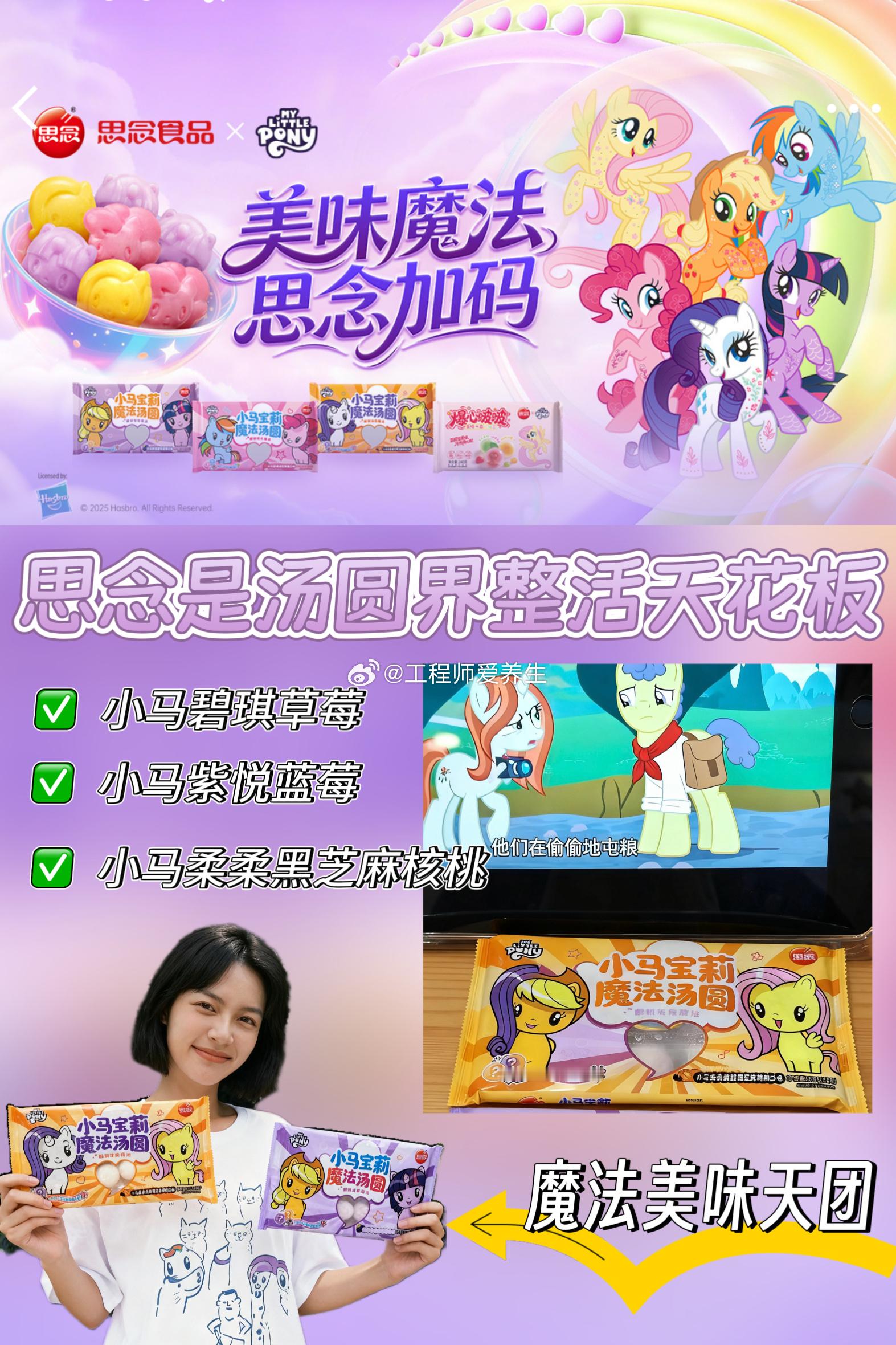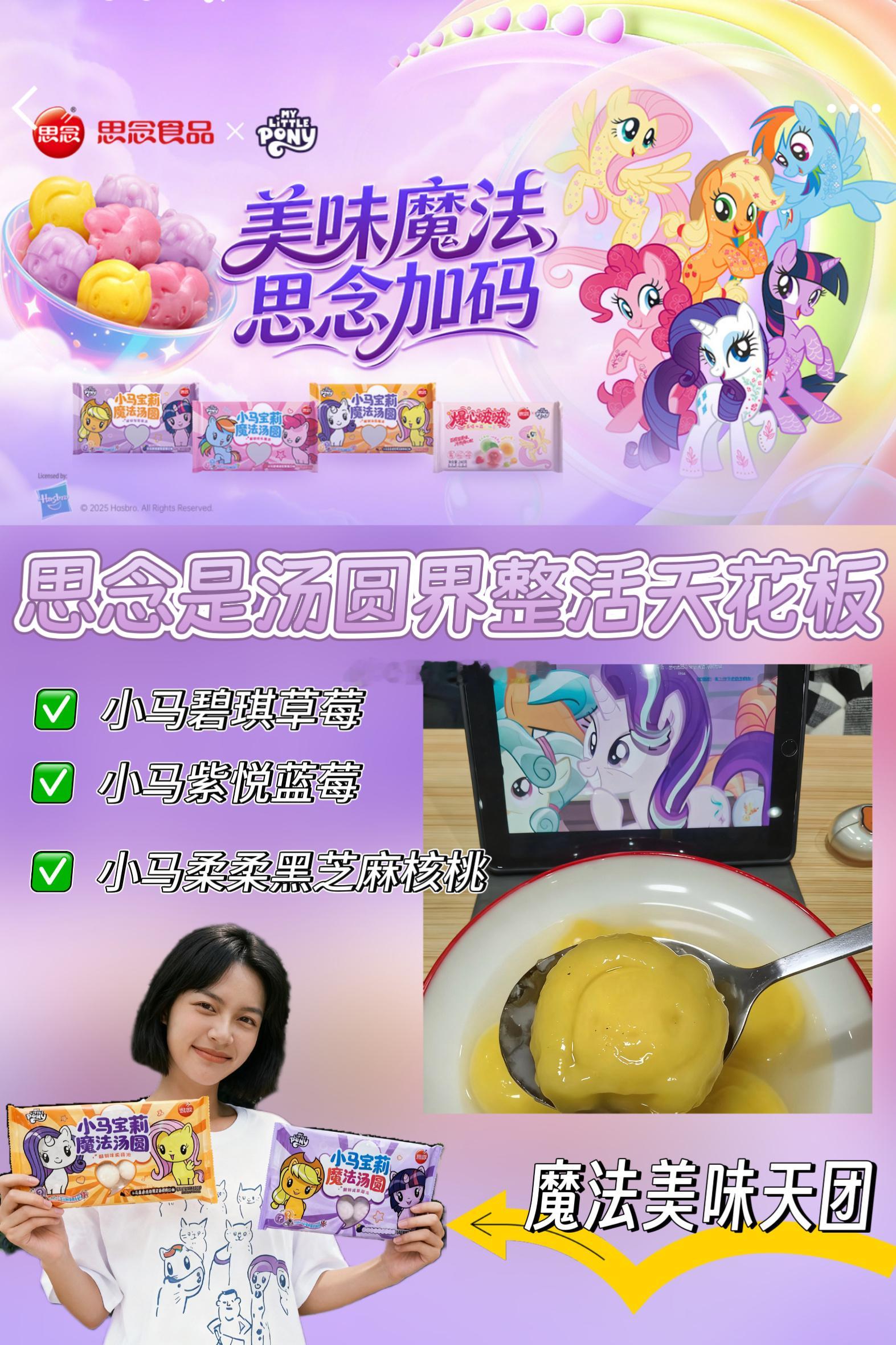 思念食品官方美味魔法思念加码思念是汤圆界整活天花板 ✨魔法美味天团,正在集合✨🎉🎉朋友们快来呀🎉🎉思念和小马宝莉联名产品(汤圆、水饺、馒头、米糕、虾饼等)上新啦!🦄🦄🦄🦄🦄周末逛超市时,一眼就被冰柜区那抹熟悉的彩虹色吸引——思念和小马宝莉的联名系列!作为从小看小马宝莉长大的“大朋友”,我简直瞬间被击中童心,毫不犹豫地将碧琪草莓、柔柔黑芝麻和紫悦蓝莓汤圆统统放入购物车,还顺手带了一包苹果杰克造型的馒头(可惜没抢到云宝黛西款!)✨🦄🦄🦄🦄🦄👉开箱测评,小马谷的美味魔法降临我家 🎁回家第一件事就是拍照开箱!包装设计真的太用心了,每只小马的可爱标志和配色都完美还原。我最想Pick的是碧琪·草莓味汤圆——作为派对之王的粉丝,怎么能错过她的粉色魔法呢?💖煮好后,虽然如我预料的那样,“小马造型”在沸水中渐渐变得抽象(笑),但味道真的惊喜!草莓酱是清新的酸甜口,完全不像有些水果馅料那样齁甜。第一口咬下去,温热的草莓内馅在口中化开,配着糯叽叽的外皮,瞬间点亮了阴雨天的下午。紫悦·蓝莓味的造型保持得最完整,但甜度确实比草莓款略高一些,适合喜欢浓郁果香的朋友。而柔柔·黑芝麻核桃绝对是黑芝麻爱好者的福音!终于摆脱了传统花生搭配,核桃颗粒增加了口感层次,甜度控制得恰到好处,温柔得像柔柔的拥抱一样~☁️✅小马碧琪草莓✅小马紫悦蓝莓✅小马柔柔黑芝麻核桃三款口味你pick哪一款呀?🦄🦄🦄🦄🦄👉神仙吃法探索,我的创意甜品实验室 🧪光是煮汤圆怎么够?我决定开发些特别吃法!✅碧琪草莓汤圆酸奶碗 🍓将煮好的草莓汤圆放入碗中,淋上浓稠的希腊酸奶,撒上格兰诺拉麦片和新鲜草莓切片。冷热交融,口感丰富,粉色系颜值超高,完全是碧琪会喜欢的派对甜品!✅柔柔黑芝麻汤圆豆乳拿铁 ☕意外发现的绝配!将黑芝麻汤圆捣碎铺在杯底,倒入热豆浆,最后加上一层奶泡和黑芝麻粉。汤圆的绵密与豆乳的醇香结合,温暖又治愈,是冬日早晨的完美选择。✅紫悦蓝莓汤圆冰淇淋三明治 🍦这个吃法需要点技巧:将煮好放凉的蓝莓汤圆轻轻压扁,夹在一小块香草冰淇淋中间,再滚上椰蓉。智慧领袖的蓝莓魔法与冰淇淋碰撞,是让人惊喜的创意甜品!🦄🦄🦄🦄🦄👉珍藏时刻,友谊魔法的实体化 🎀这次联名的周边系列让我这个收藏控狂喜!我幸运地抽到了魔法帆布包和一套多彩贴纸。帆布包的质量出乎意料地好,容量大且设计可爱,已经成为我上班的通勤必备。贴纸则被我精心布置在手账本和水杯上,每次看到都会心情变好✨最让我感动的是纪念票根的设计理念——“通往美味魔法的专属车票”。我将它夹在手机壳里,仿佛随身携带了一小片小马谷的温暖。🦄🦄🦄🦄🦄👉友谊的滋味,与家人分享的魔法时刻 👨👩👧上周日,我特意煮了三色汤圆邀请闺蜜来家里“小马茶话会”。我们一边重温动画经典片段,一边品尝不同口味的汤圆,投票评选各自的最爱。笑声中,我突然意识到,这不正是小马宝莉一直传达的友谊魔法吗?——分享让简单的食物变得特别,陪伴让平凡的日子闪闪发光。昨晚给爸妈也煮了一碗,妈妈笑着说:“这黑芝麻核桃味真香。”爸爸则好奇地研究包装上的小马图案。那一刻,跨越代际的快乐通过这些小小的汤圆传递开来,食物成了连接彼此的桥梁。🌁🦄🦄🦄🦄🦄👉平凡生活中的一点亮色 🌈在这个快节奏的时代,思念与小马宝莉的联名不仅仅是商业合作,更是为成年人保留的一扇通往童真的窗。当我们在厨房里煮着这些可爱的小马汤圆,当我们把贴纸仔细贴在珍爱的物品上,当我们与重要的人分享这份甜蜜——我们不仅仅在消费产品,更是在创造属于自己的、带着温度的记忆。🪄美味是短暂的魔法,但由此产生的温暖时刻却会被长久铭记。感谢这个可爱的联名系列,让我在平凡的日常中,又一次相信了友谊的魔法、创意的乐趣和分享的快乐。“美味魔法”不在别处,就在我们用心生活、与人分享的每一个瞬间里。下次,我要试试把小马馒头做成迷你汉堡,为我的小马美食地图再添一笔!谁要一起来探索?🌟🍽️