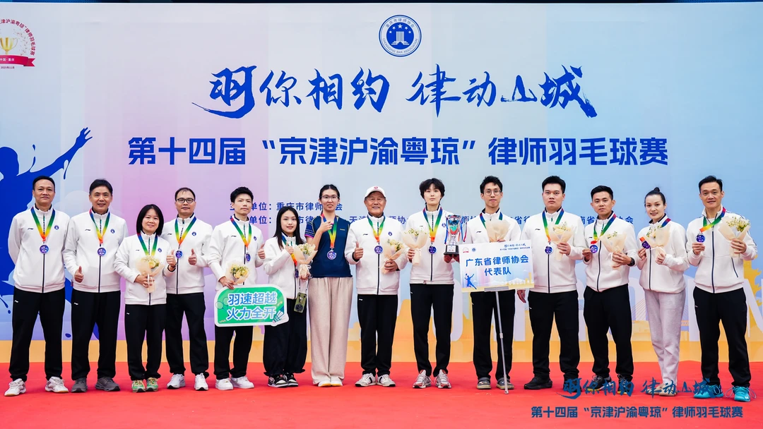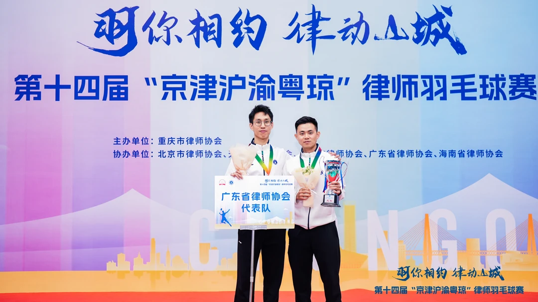 [火R][火R]律动山城,相约重庆。 [向右R][向右R]第十四届“京津沪渝粤琼”律师羽毛球赛圆满收官!有幸作为广东律协代表队男双队员,与搭档携手以全胜战绩,助力团队勇夺亚军,汗水和拼搏,是集体荣誉最好的注脚……