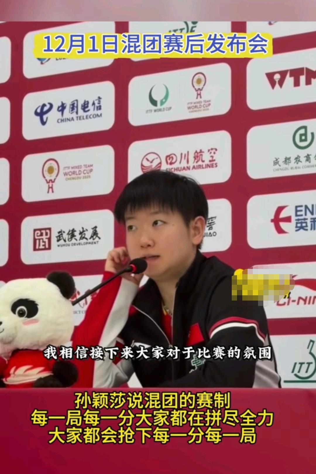 国乒两队混双承包了成都混合团体世界杯的前两天的比赛,国乒团队共派出男女队主力各四名队员参赛。 第一天的比赛国乒队对阵港队,莎头组合上混双,蒯曼和林诗栋负责单打,国乒队8:1战胜港队。 第二天中国队对阵埃及队,中国队换了林诗栋和蒯曼负责混双,孙颖莎和王楚钦负责单打,中国队8:0战胜埃及队。 林诗栋、蒯曼对阵比较混双穆斯塔法、玛尔娃,第一局从4:1到7:1,11:3中国队拿下第一局,第二局从2:1到8:2,11:3动漫组合拿下第二局,第三局4:1的开局,7:3后也遭遇了埃及队的追分,7:6中国队也使用了暂停,暂停回来后的动漫组合连续拿下两分9:6再次将比分拉开,11:7中国队以3:0拿下第一盘。 第二盘孙颖莎对阵阿尔霍达比,第一局6:1莎莎领先,11:4莎莎顺利拿下第一局;第二局莎莎放慢了节奏,在以赛代练确实也给了埃及对手很多机会,局末10:9、12:11阿尔霍达比两度拿到局点都未能拿下,莎莎连续拿下三分以14:12拿下第二局;第三局已经找到了节奏的莎莎,没有再给对手太多机会4:1开局,11:4莎莎顺利拿下第三局。 第三盘王楚钦对阵埃及选手阿齐兹,两局都是5:1的开局,第一局11:5、第二局11:4,中国队8:0埃及队,三盘没有打满就下班了。 两个队伍的实力完全不在一个段位,第一盘三局比分11:3、11:3、11:7;第二盘三局比分11:4、14:12、11:4;第三盘两局比分11:5、11:4. 三盘比分33:13、36:20、22:9,三盘总比分91:42,埃及队得分还不到中国队的一半。 感觉混合团体世界杯,确实很有意思,赛后新闻发布会王楚钦说跟女队队友一起比赛,非常开心又踏实,因为我们的队友都是最强的。