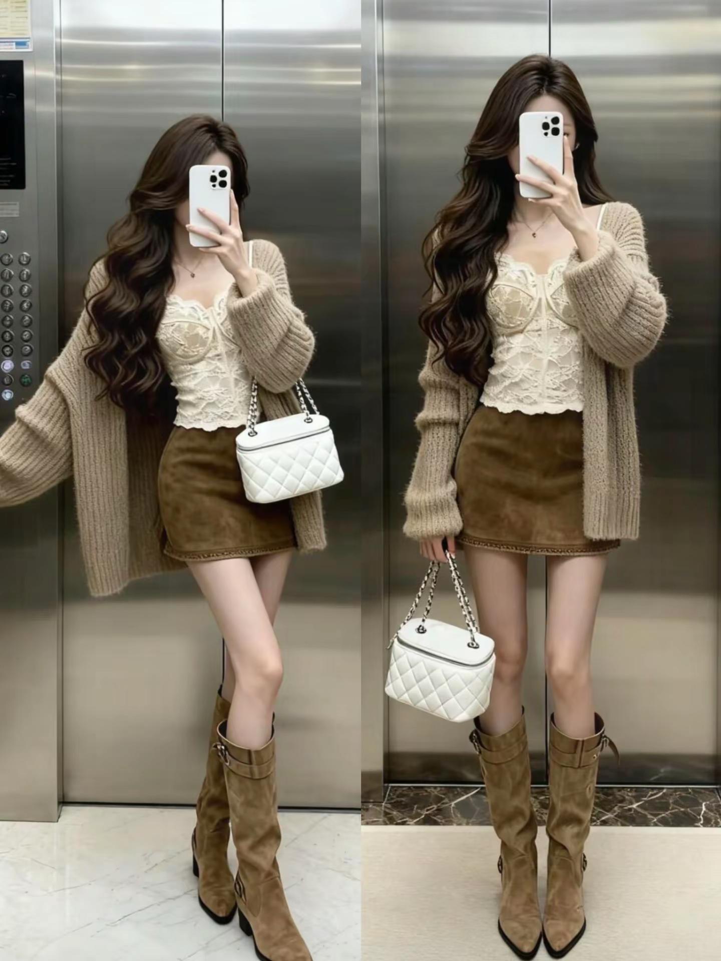 谁懂啊!这蕾丝内搭➕短裙开衫简直美哭了!御姐风 韩系穿搭 穿搭小心机 辣妹穿搭 今天穿什么