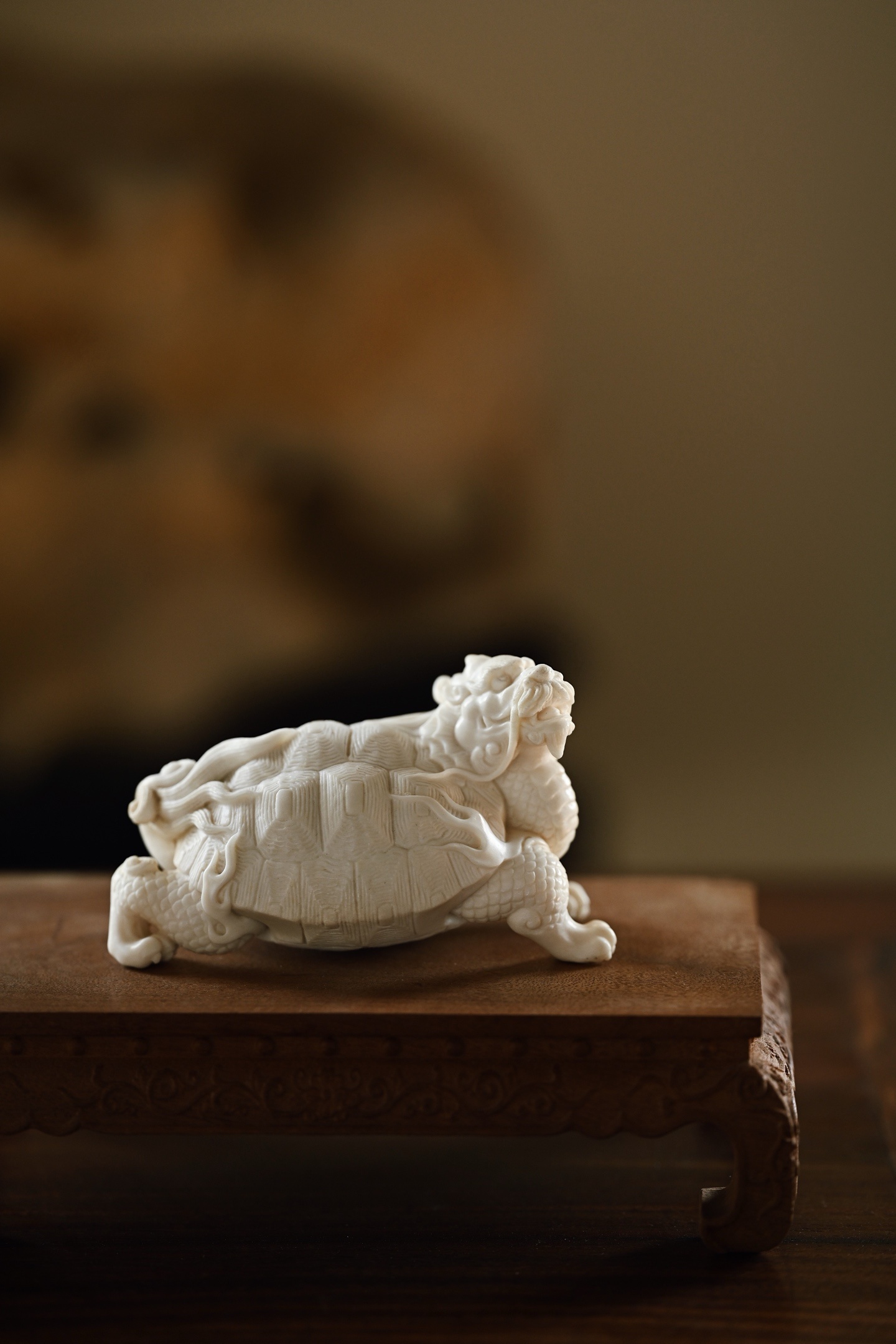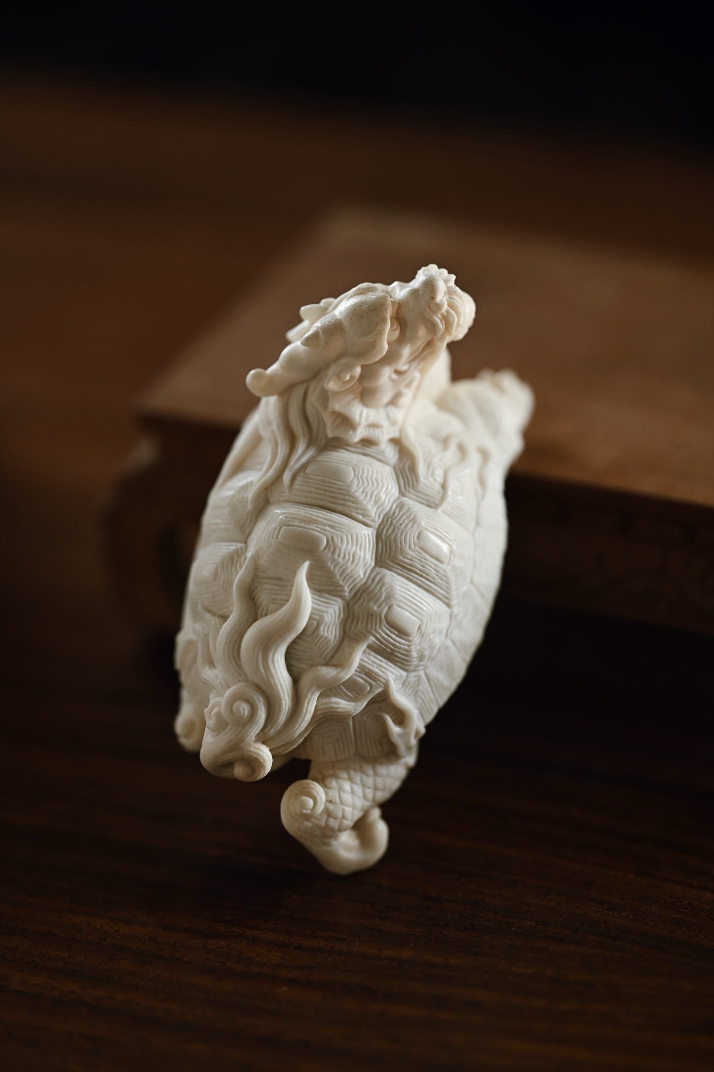 鹿角 | 龙龟料质细腻,龙龟凸额方口,双目有神,长颈挺立,四肢沉稳,背甲宽厚,威