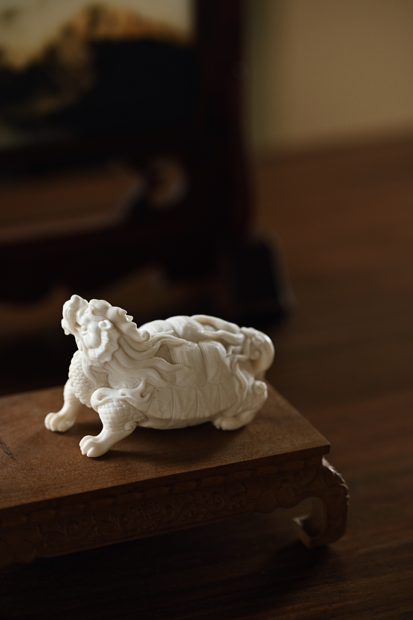 鹿角 | 龙龟料质细腻,龙龟凸额方口,双目有神,长颈挺立,四肢沉稳,背甲宽厚,威风凛凛,雕刻一丝不苟,细腻生动,古朴文雅。8.3*4.5*5cm 112g