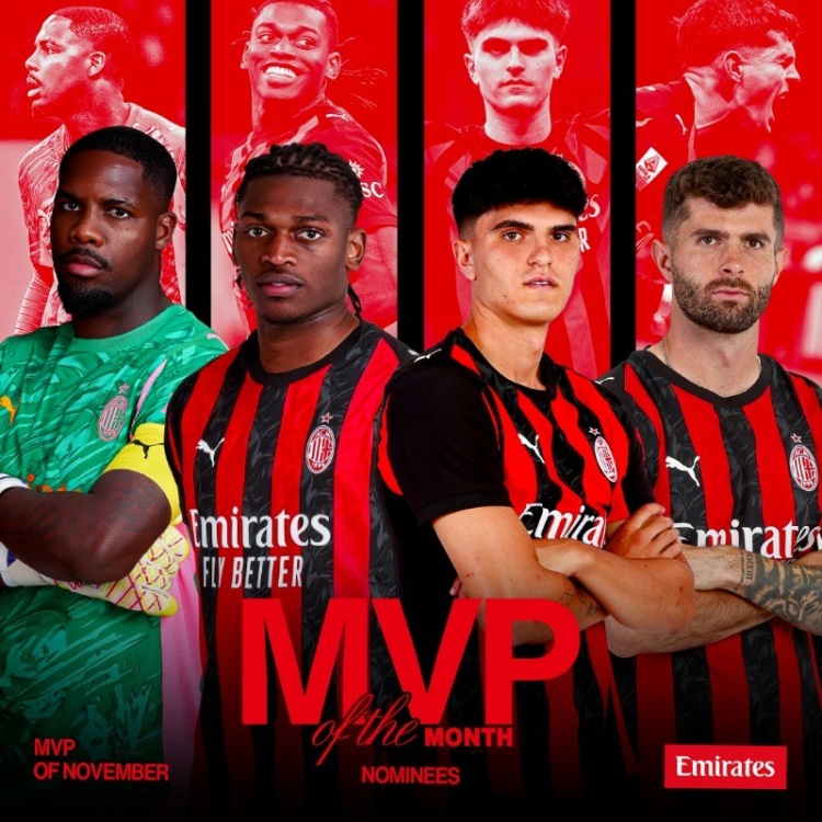 直播吧12月2日讯米兰公布了11月队内最佳球员候选,迈尼昂、莱奥、巴特萨基和普利西奇。