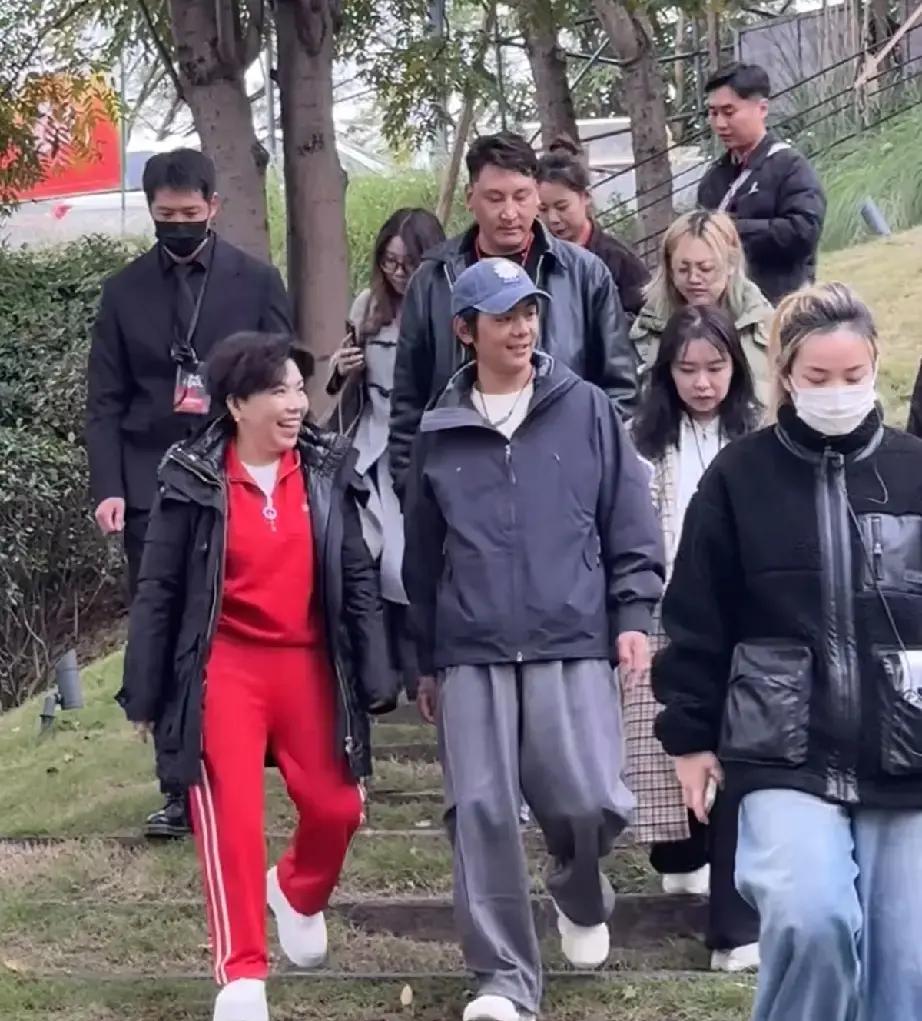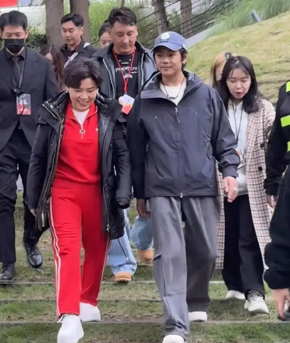 邓亚萍穿着运动装,走路带风,一看就是经常锻炼的人。她跟丁真边走边聊,时不时还拍拍他肩膀,像个大姐姐一样。丁真倒是有点拘谨,话不多,就听着邓亚萍说。