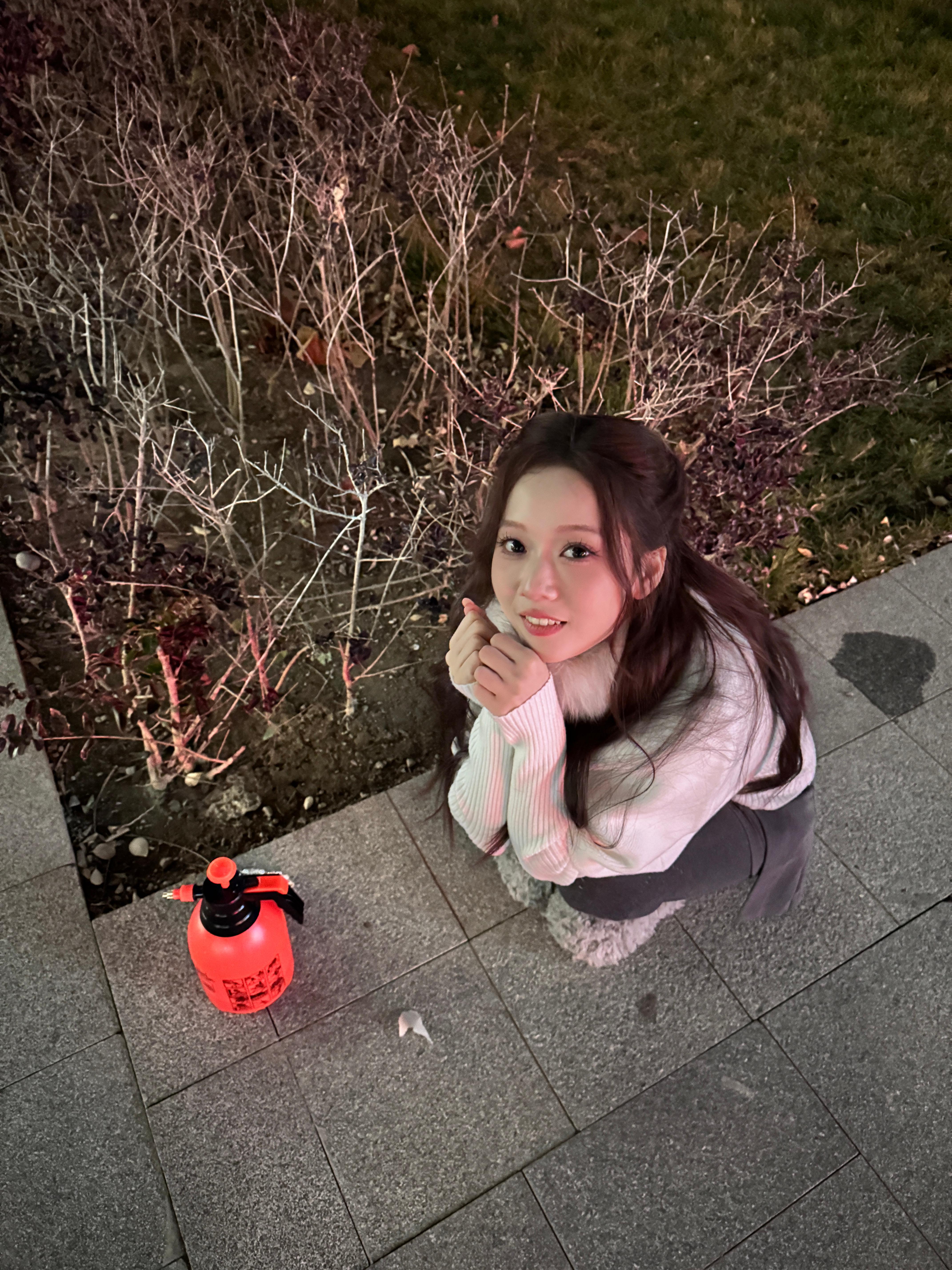 主持曼妮晒照:拍摄休息间隙,地上长了一个小蘑菇