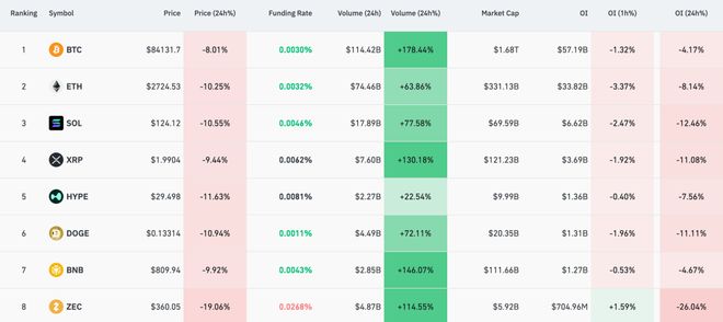 值得一提的是,这已是虚拟资产市场连续数周的抛售潮延续,自10月初比特币创下12.63万美元历史新高后,至今累计跌幅已超33%,年内涨幅悉数回吐。