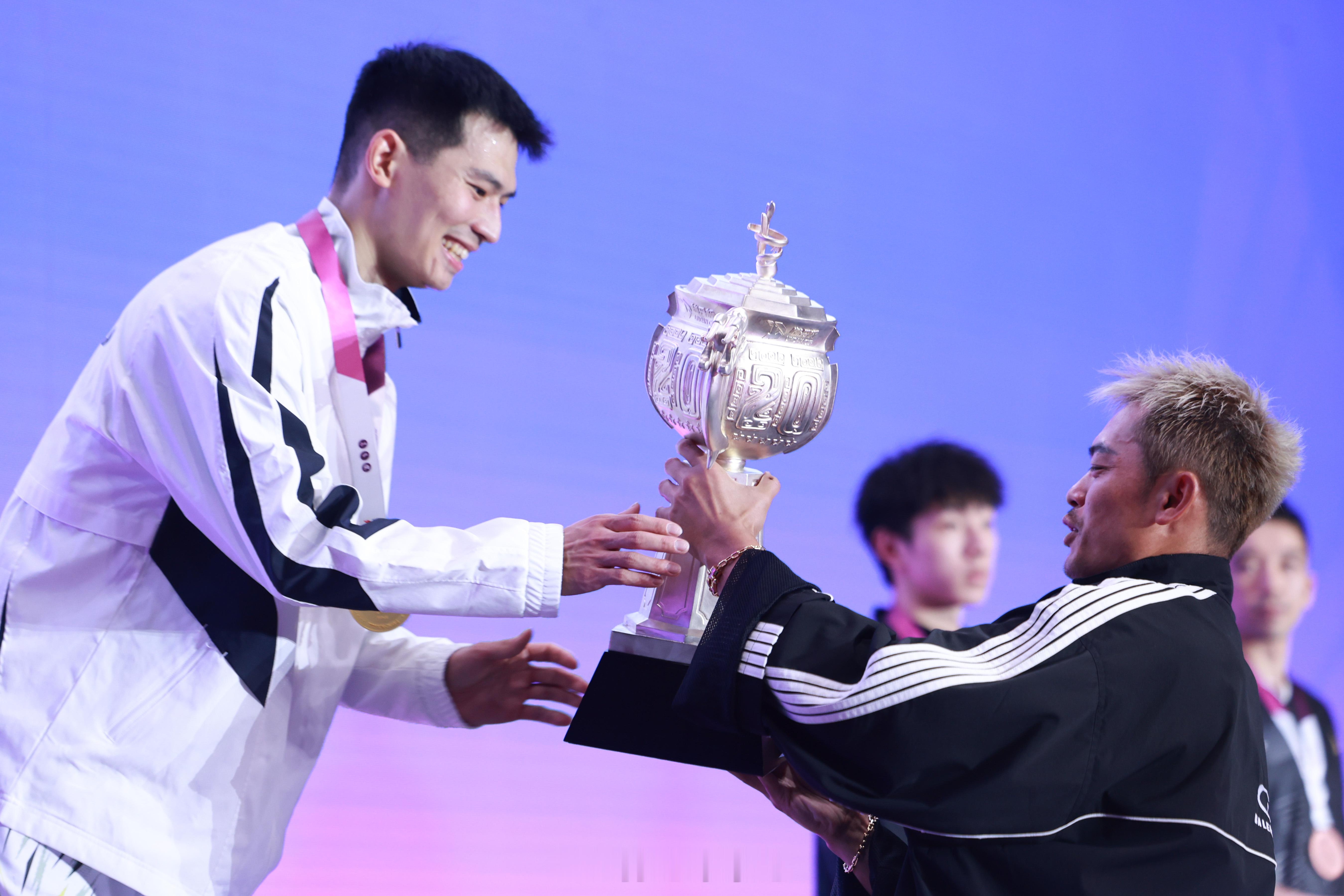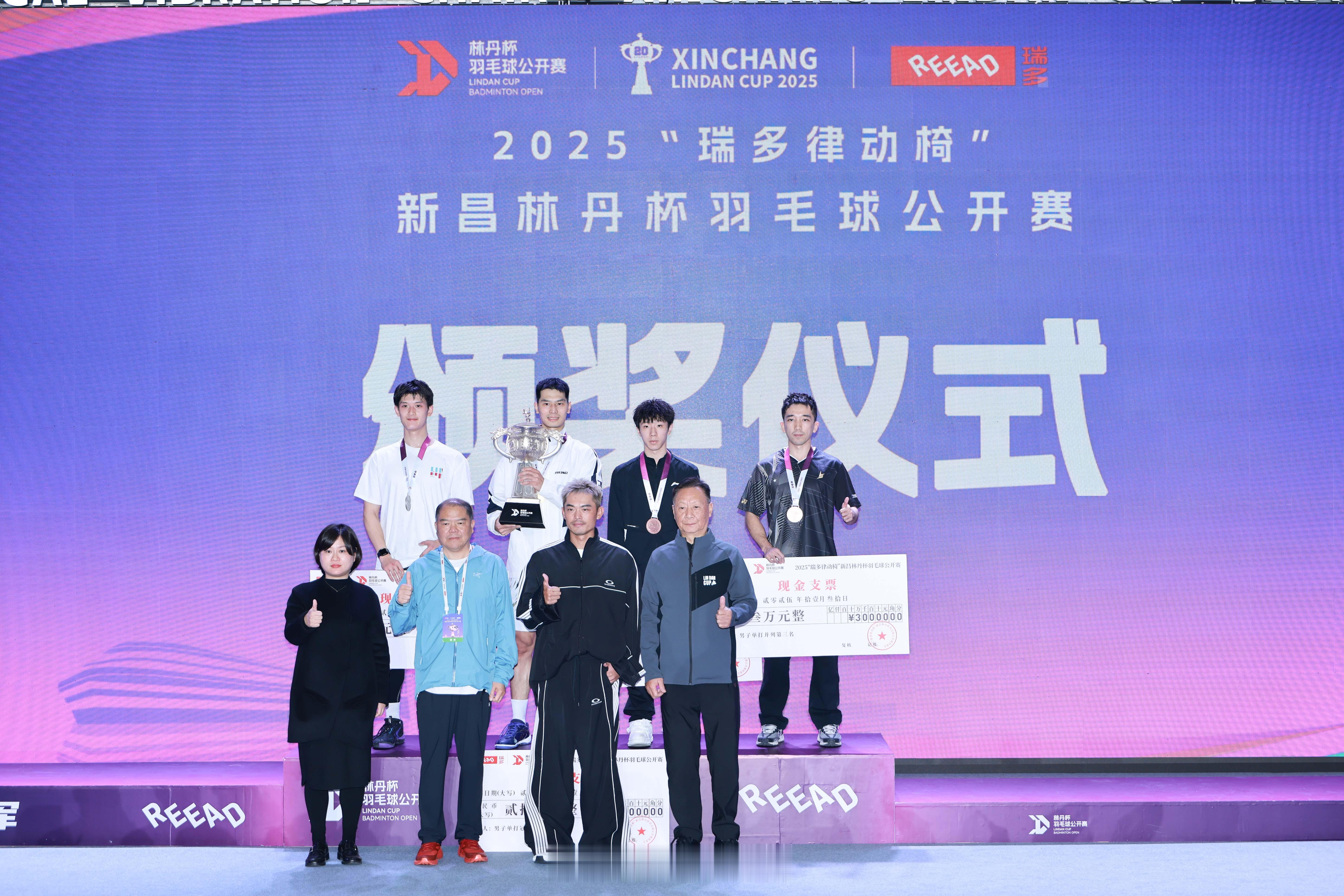 世说新羽林丹杯羽毛球公开赛 赵俊鹏三夺林丹杯,天姥山下见证最强阵容对决11月30日,2025“瑞多律动仪”新昌林丹杯羽毛球公开赛于新昌小球中心圆满收官。三天总计战罢1792场,万众瞩目的男子单打冠军由赵俊鹏再度摘得,决赛中他以15比9、15比8击败高渐宽,达成林丹杯“三冠王”,赢得20万冠军奖金。混合团体赛中,天马战队2比0战胜昭煊时代,强势夺冠。青少年男单ABCDE组冠军分别被吕柯辰、徐橦舟、王蕴舜、何心远、林诺岩获得,青少年女单ABCDE组的冠军得主是俞梓绛、张馨琳、任嘉悦、黄琬琪、项一诺。新昌福地助赵俊鹏三捧林丹杯瑞昌第三年举办林丹杯,迎来史上最强一届男子单打阵容——“三冠王”詹俊为、“双冠王”赵俊鹏、周泽奇,以及斩获一冠的伍家朗、顾俊峰均登场出战,为本就激烈的林丹杯之争再添难度。11月30日下午,新昌小球中心内人声鼎沸,全场观众都在期待林丹杯男单最后决战的一触即发。16时28分,男子单打决赛两位主角相继登场——拥有“两冠一亚”战绩的赵俊鹏与首次闯入决赛的“大学生选手”高渐宽狭路相逢,赛场气息瞬间剑拔弩张。他们三天内由小组赛一路连闯9关,战至决赛。赵俊鹏在决赛日上午以31比21战胜顾俊峰,半决赛以31比24再赢张维伊;高渐宽也以31比16击败盛晓东、而后31比21力克王轶凡。这场在双左手间展开的林丹杯之争,悬念拉满。两登冠军宝座的赵俊鹏在开局频繁出错,0比4落后高渐宽。随后,在沉着应对中赵俊鹏展现出更强的执行能力,不仅追平比分更将分差不断拉开,以15比9先拿一分。第二局中,双方在网前、后场耐心周旋,但凭借艺高人胆大的心态,赵俊鹏以15比8再下一城。最终,继去年他在新昌捧杯后,赵俊鹏于福地写就了自己林丹杯的“三冠王”。赛后,赵俊鹏说:“我很开心能在林丹杯拿到第三冠,这也是我在新昌的第二冠,感谢对手高渐宽,一起奉上这么精彩的决赛。全运会后我完成了自己的婚礼,赛前也有未知,但是我相信只要努力坚持了,一定会在你想要的时候证明自己。”男子单打决赛前,混合团体决赛率先在天马战队和昭煊时代两队之间展开。首场混双对决,天马战队派出世界排名第9的吴埙阀/赖洁敏迎战昭煊时代的欧烜屹/冯雪颖,比分从领先到打平,一路你追我赶,最终,吴埙阀/赖洁敏以31比27为团队赢得开门红。第二场男双对决,黄永昌/刘航益以31比24战胜林嘉彦/林永晟,为天马战队夺得林丹杯冠军拿下冠军点。赛后,黄永昌/刘航益表示,“赢下团体冠军我们心情非常激动,首先要感谢我们的队友,也要感谢林丹杯这个舞台,更要感谢现场球迷们给予我们双方的热烈支持。”天姥山下谱写羽球新篇章林丹杯连续三年在新昌举办,俨然已经成为这座体育之城的名牌赛事。在精彩纷呈的千余场对决中,林丹现身赛场,亲自为获奖选手颁奖,见证“新王加冕”的荣耀时刻。他为各组冠军挂上奖牌,这份传承意义非凡。本站即兴表演赛上,多位国手携小球员一起场上对垒,精湛的球技引得观众惊呼连连,更为这项赛事注入独特的魅力与活力。赛场之外,既有美食区供爱好者享用,场内设立的新昌特色店,以及林丹杯周边快闪店,为球迷和观众带来丰富的互动体验与纪念品选择,进一步延伸赛事的热度与影响力。在传播层面,本次林丹杯实现了全方位、多平台的同步直播,覆盖林丹杯羽毛球公开赛抖音号、视频号、快手号,以及广东体育频道公众号、微博、广东体育+、触电新闻、新浪等多个平台,让无法亲临现场的观众也能第一时间感受赛场的激情与魅力。特别是为了联动线上线下的羽球热度,新昌林丹杯首次引入球星面对面的直播环节。赛事创始人林丹不仅光临直播间谈起新昌站赛场上的所见所感,更亲签限定T恤,直言“多送周边”给参与的球迷朋友们。新昌三年耕耘,见证了无数球员的拼搏与热爱,也让羽毛球精神在天姥山下,谱写新章。随着新昌林丹杯的圆满结束,让我们相约下一站林丹杯,再续精彩!